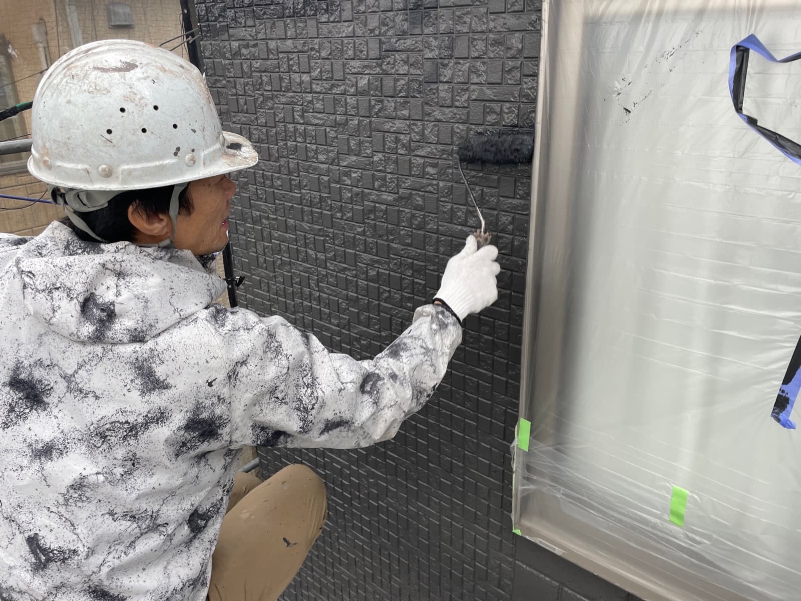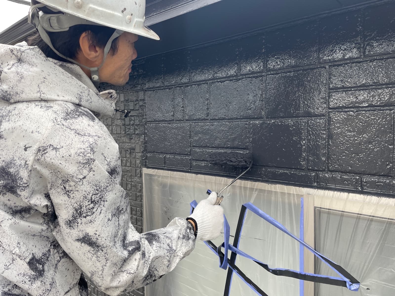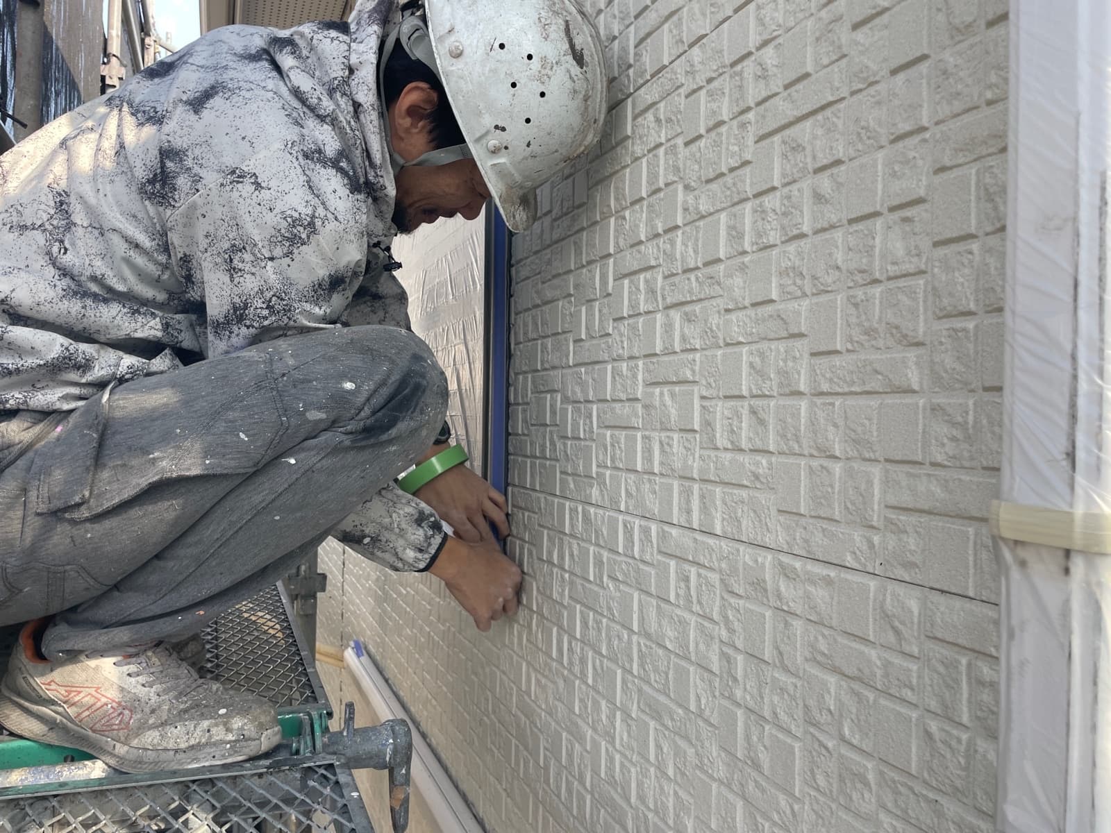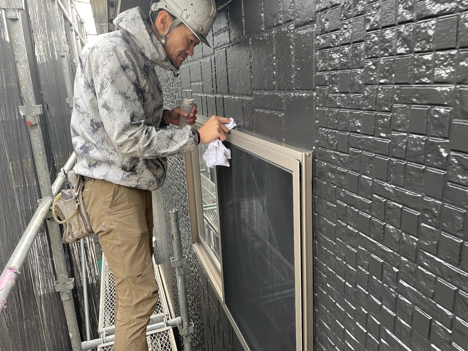 次回施工・・・外壁上塗り2回目、養生ばらし