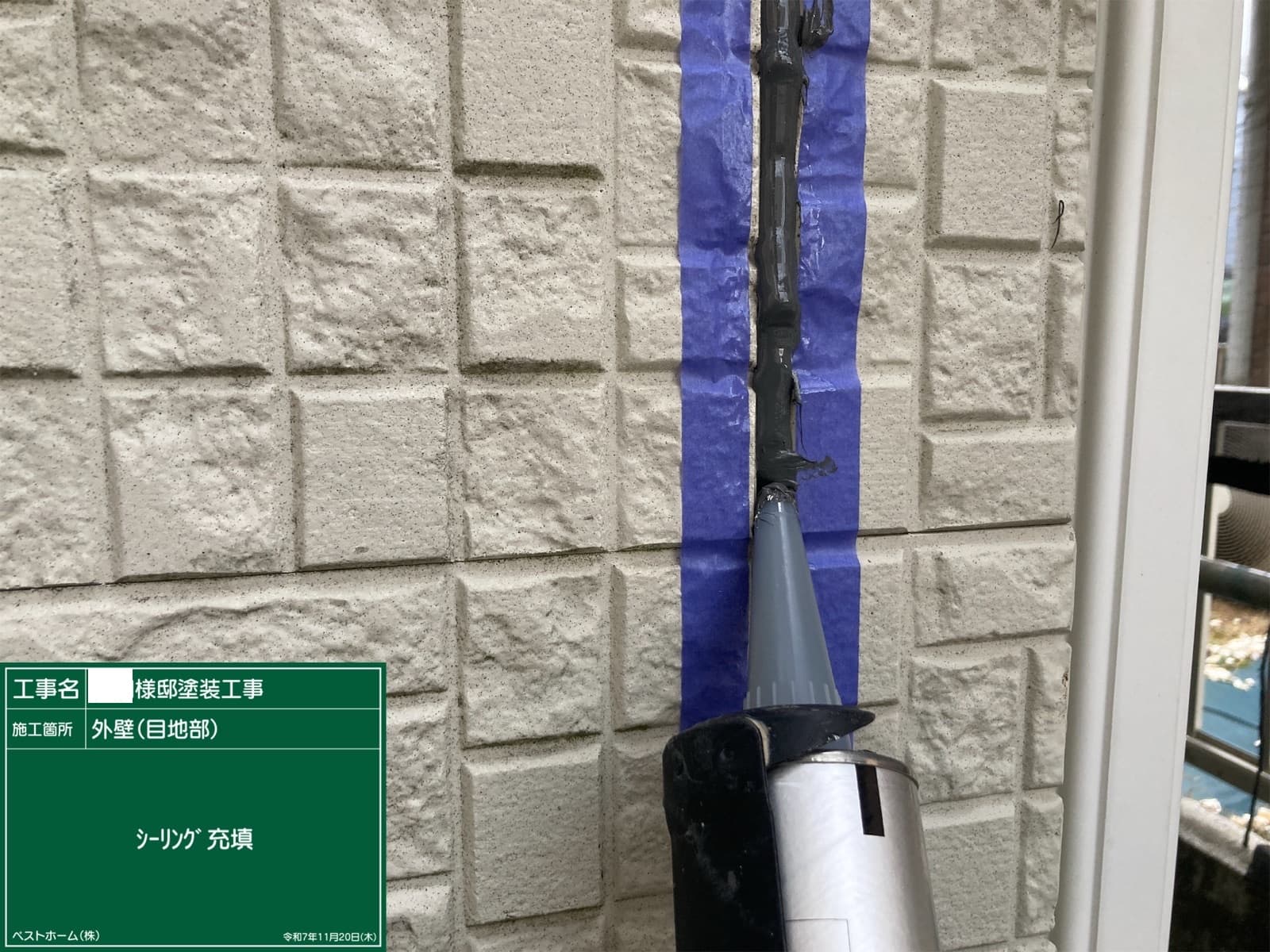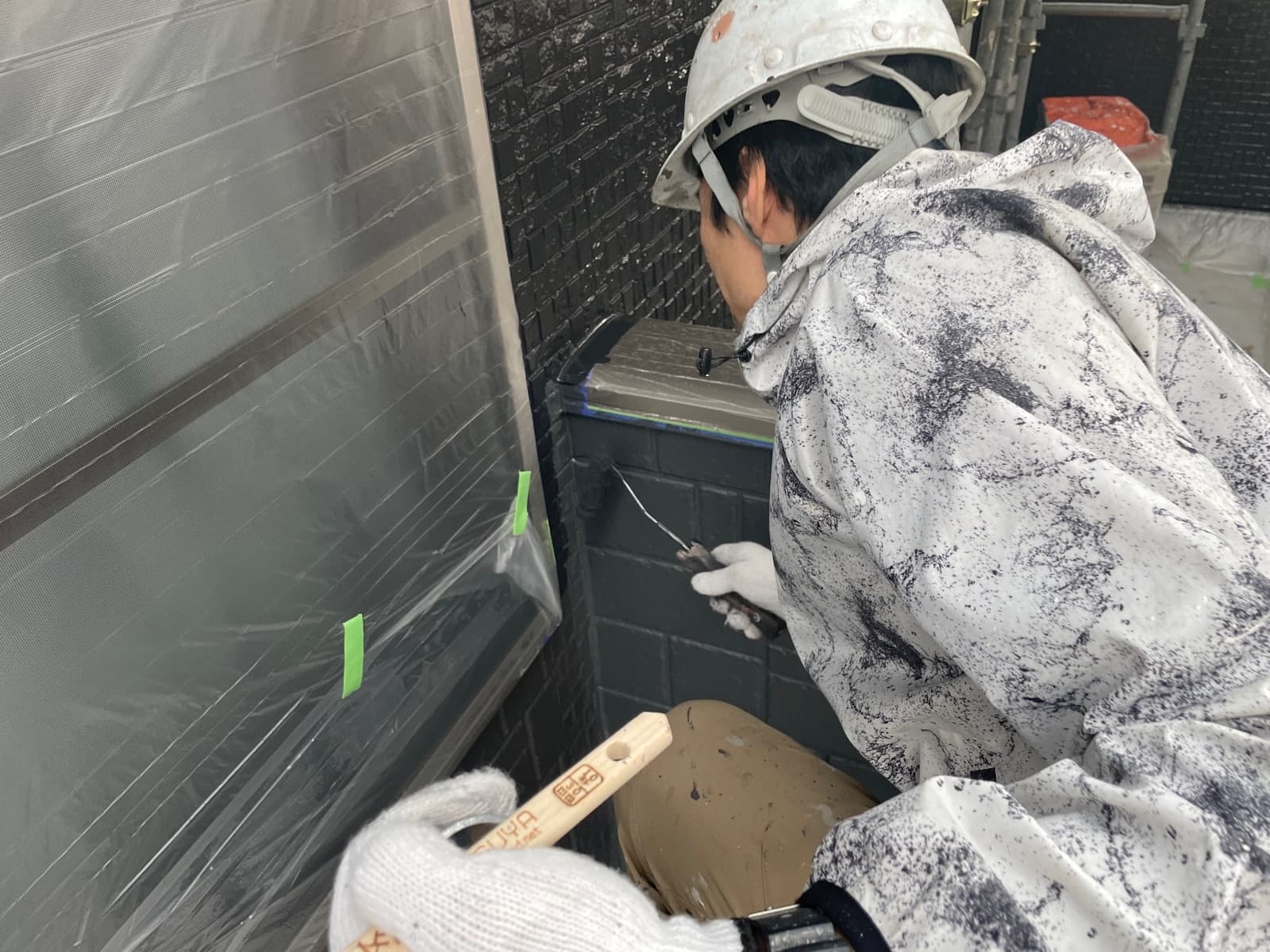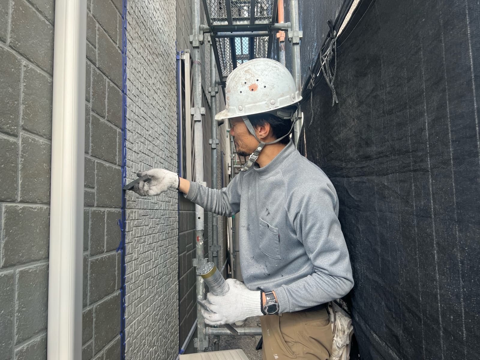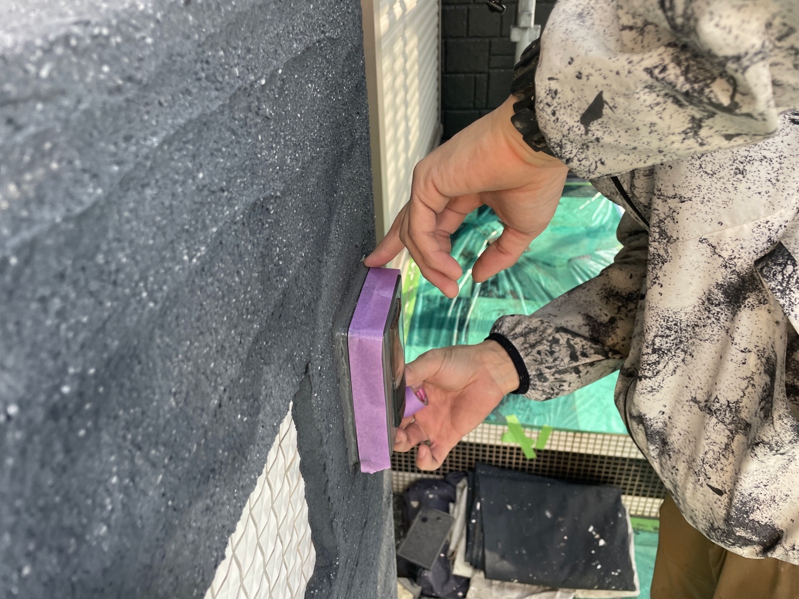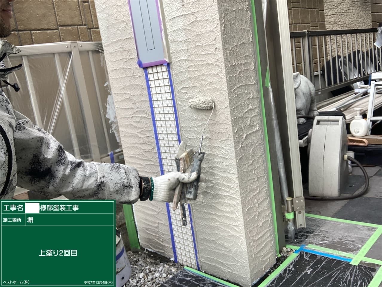 次回施工・・・外壁上塗り2回目、養生ばらし