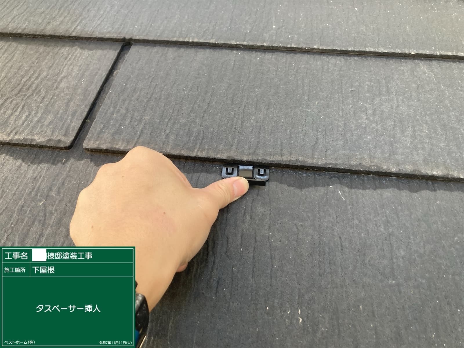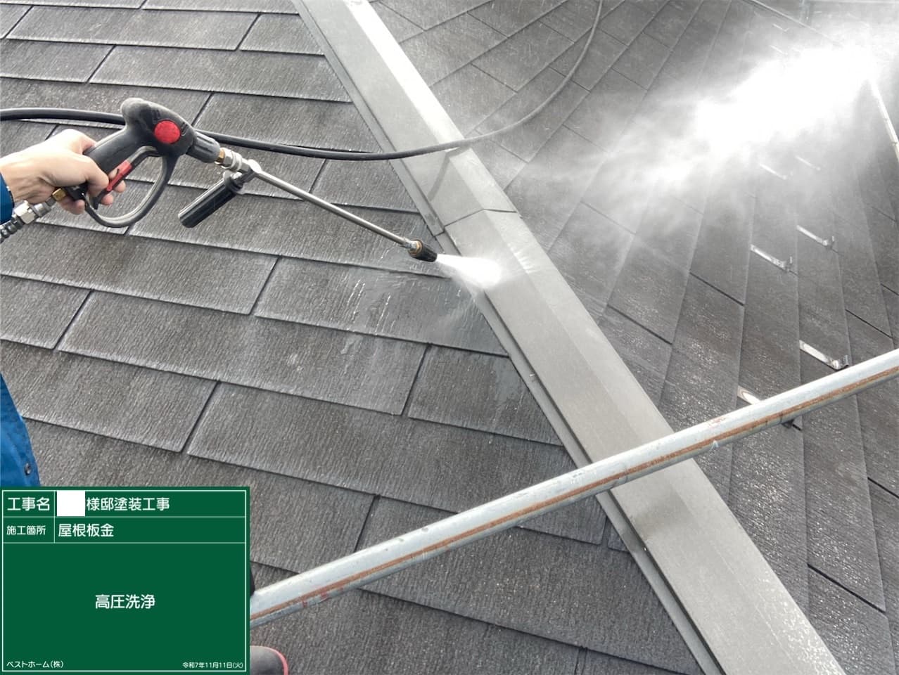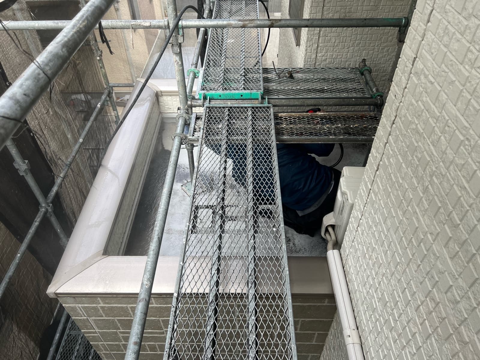 本日は高圧洗浄、屋根タスペーサー取付けをさせて頂いております。