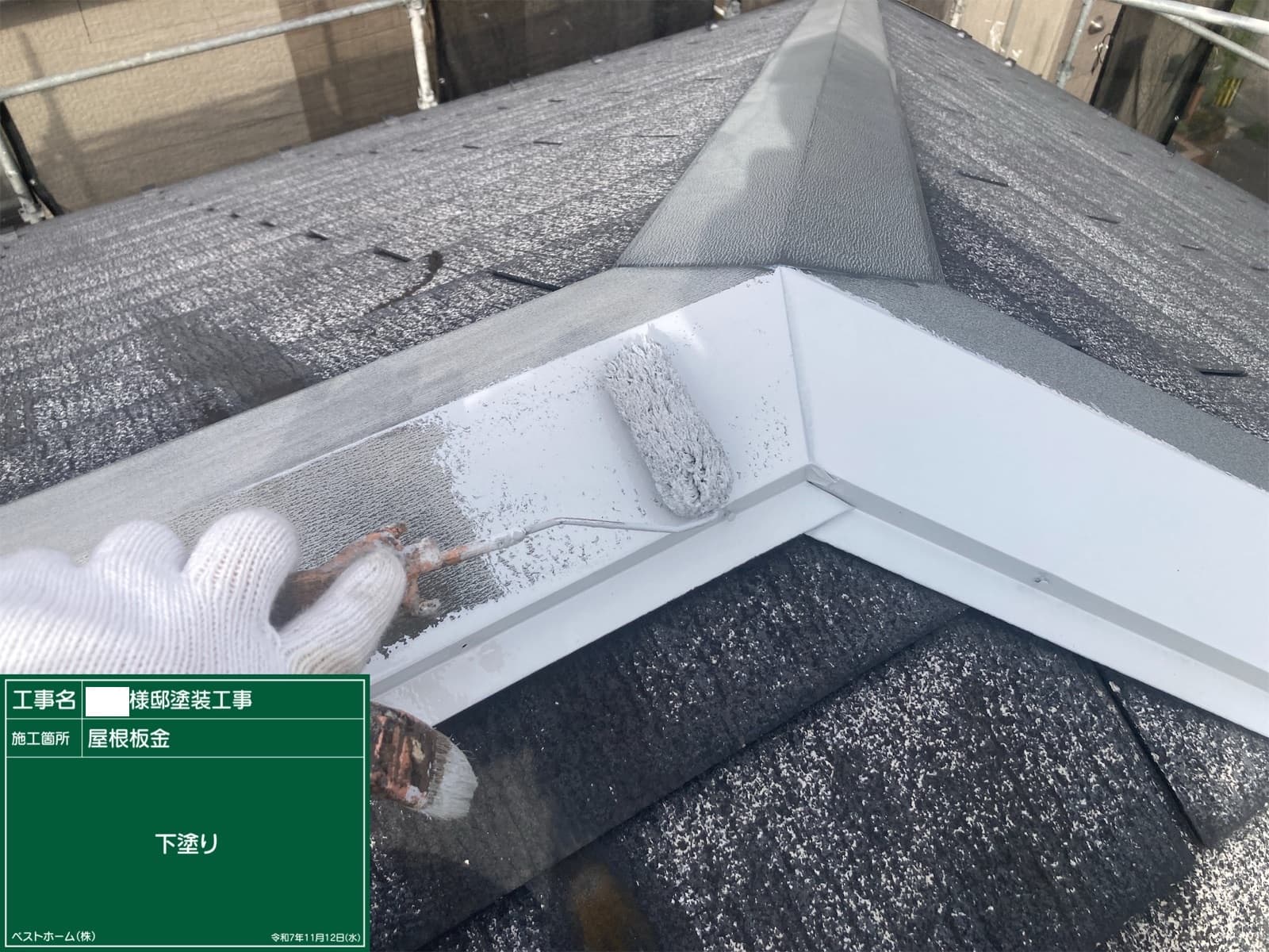 ◎屋根補修、下塗り1回目、鉄部錆止め