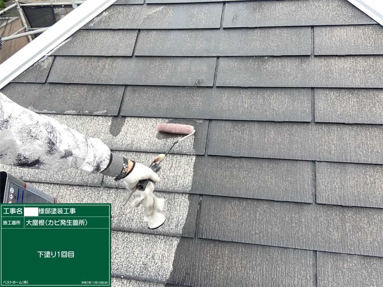 次回施工・・・屋根下塗り2回目、中間検査、錆止め予定