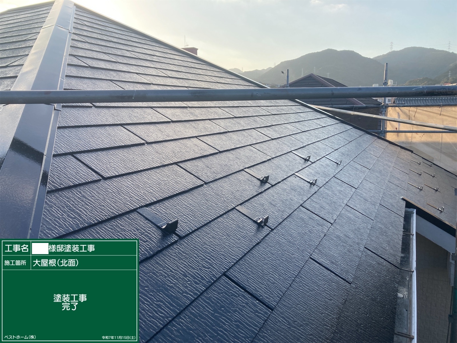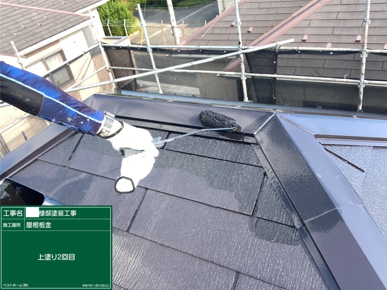次回施工・・・屋根上塗り1回目、シーリング工事