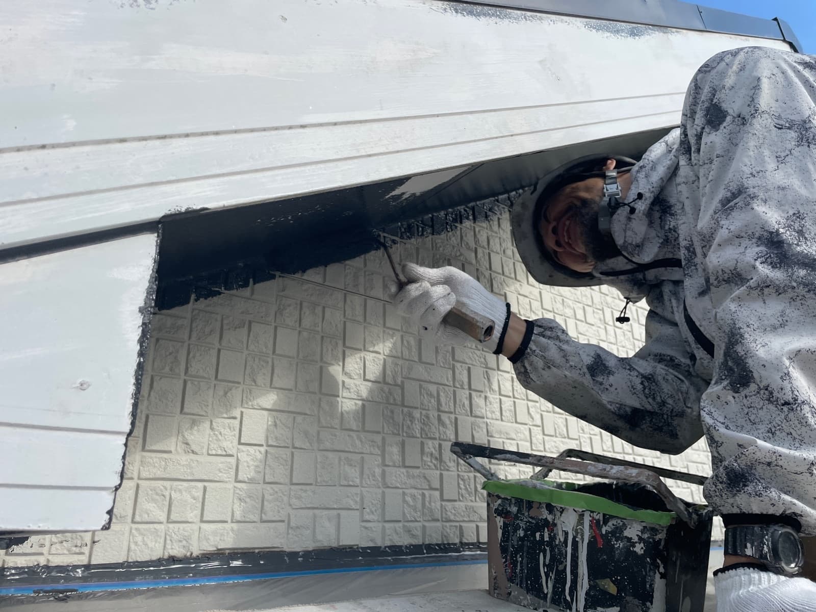 本日は屋根上塗り2回目、シーリング工事をさせて頂いております。