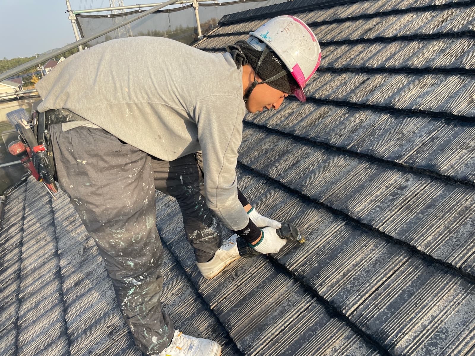 本日は屋根塗装下塗り1回目、鉄部錆止め、養生をさせて頂いております。