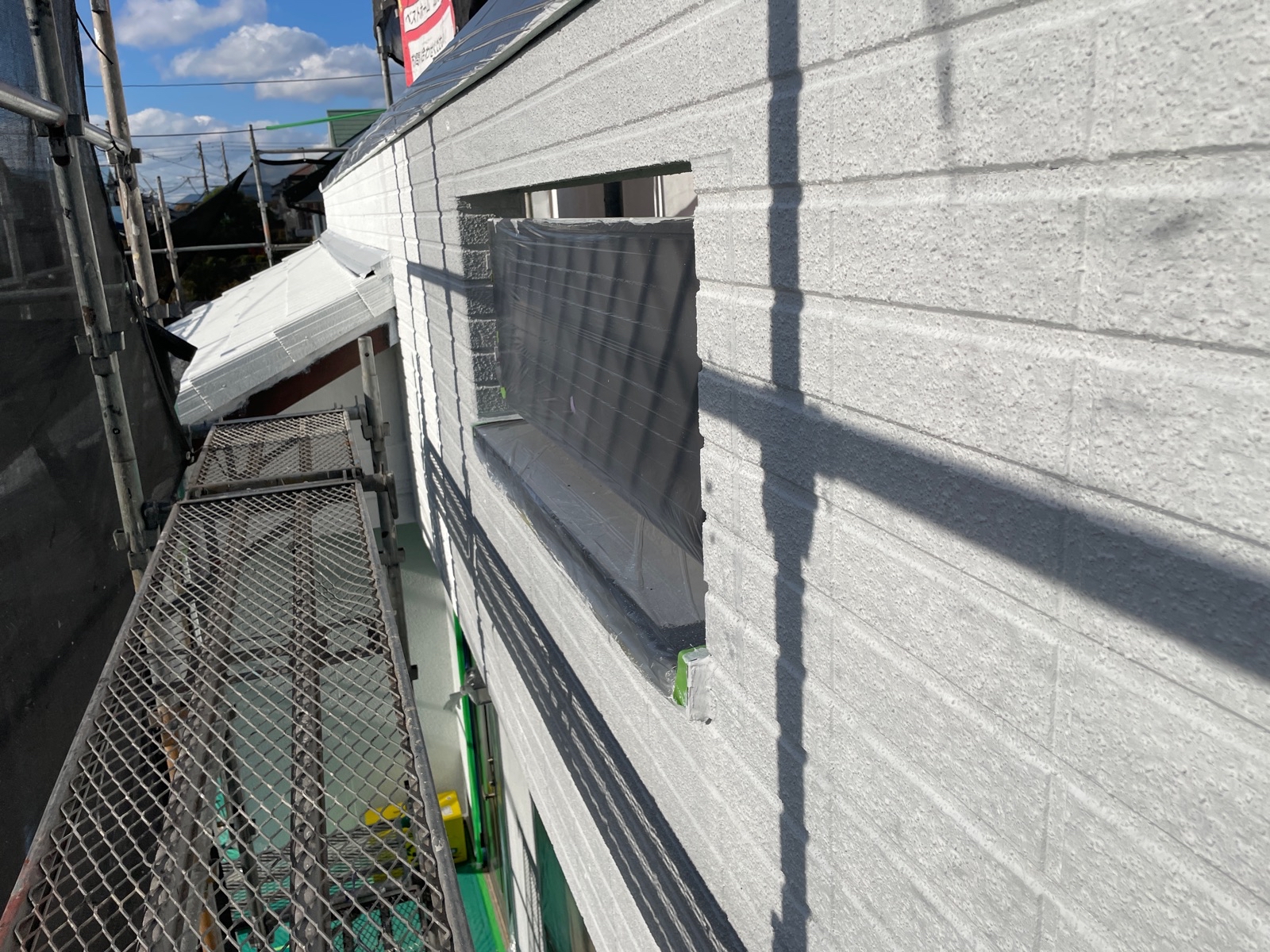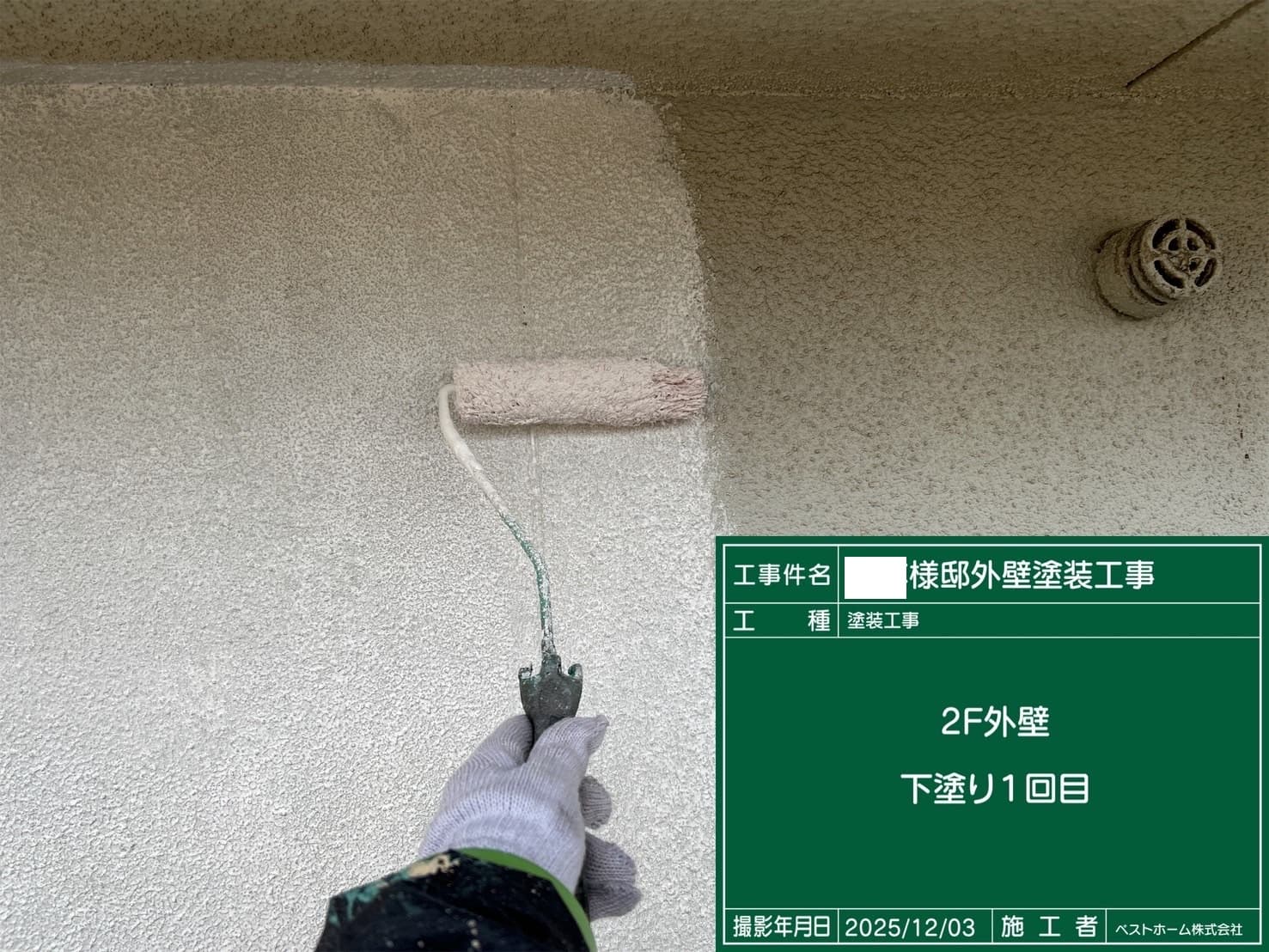 本日は一部付帯塗装、外壁下塗り1回目をさせて頂いております。