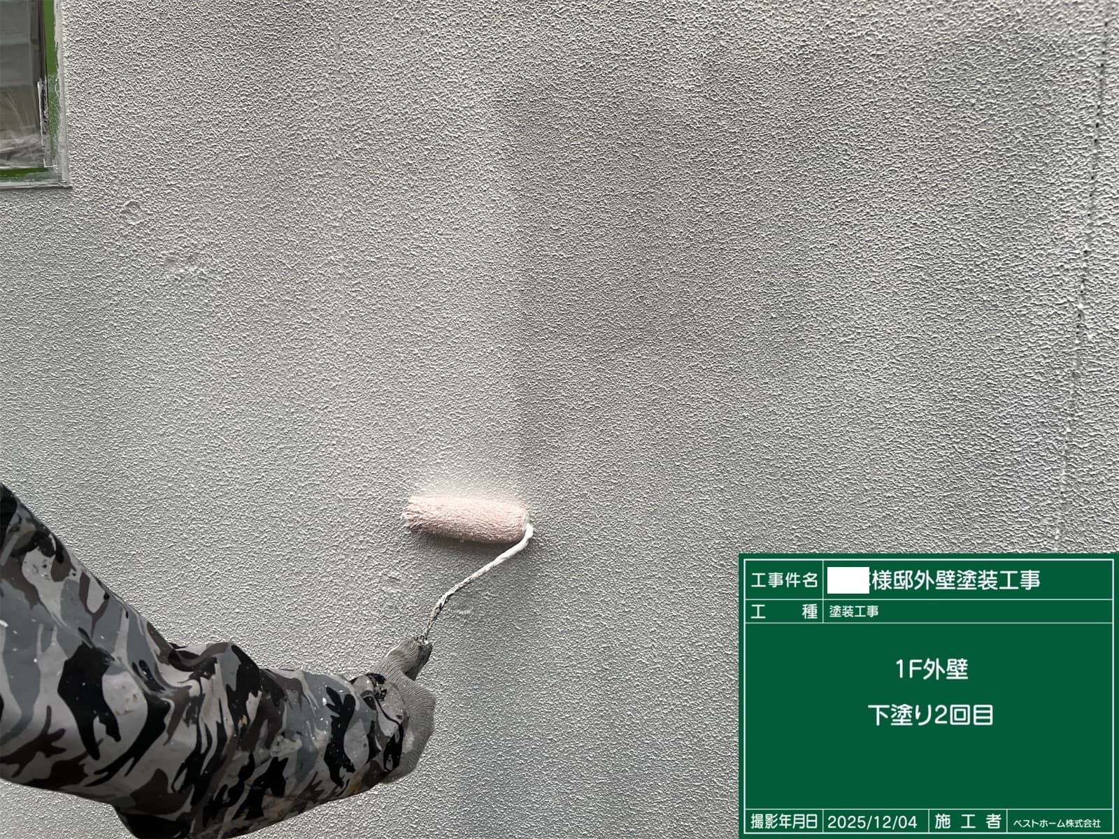次回施工・・・外壁下塗り2回目、屋根下塗り2回目