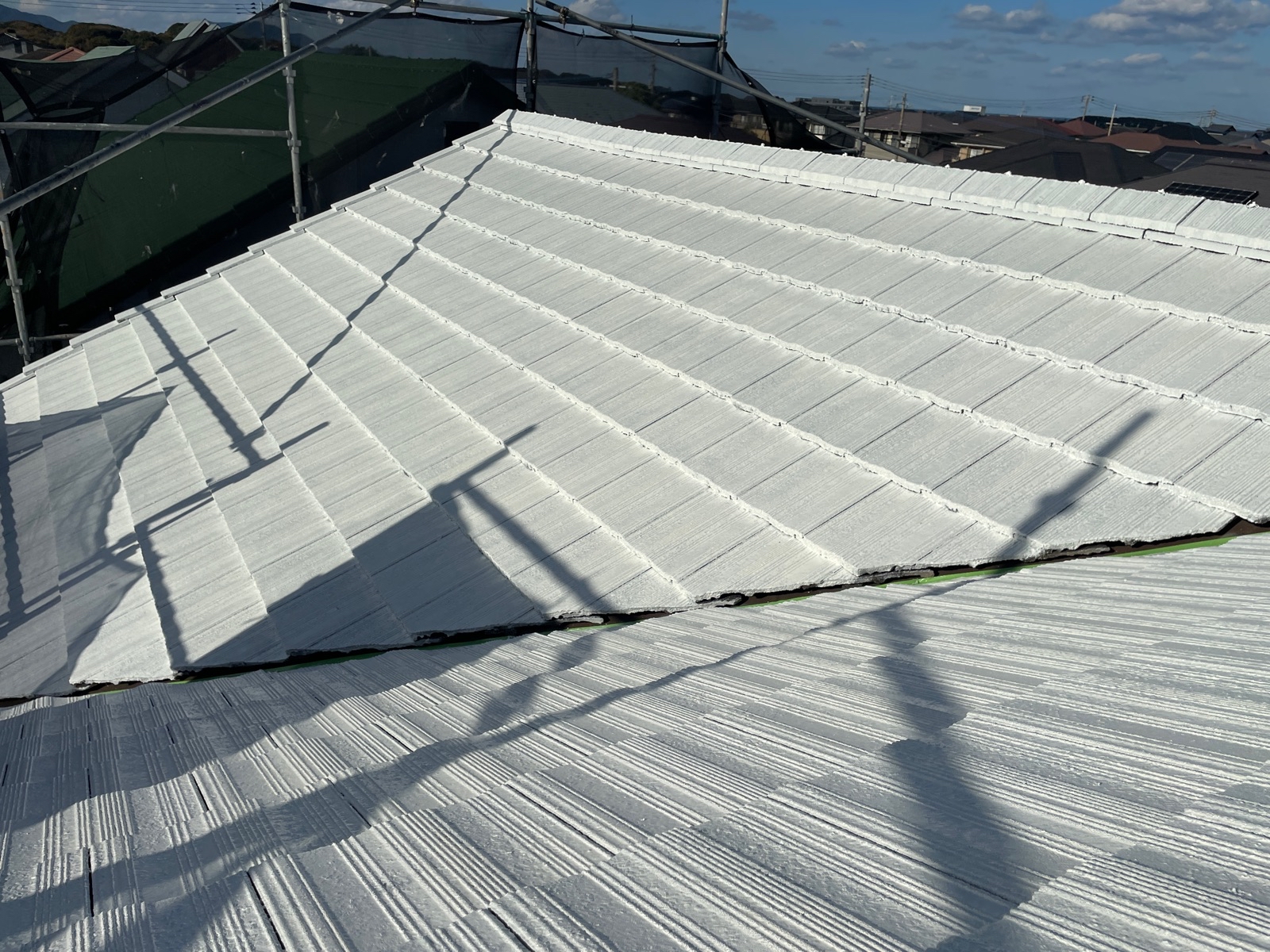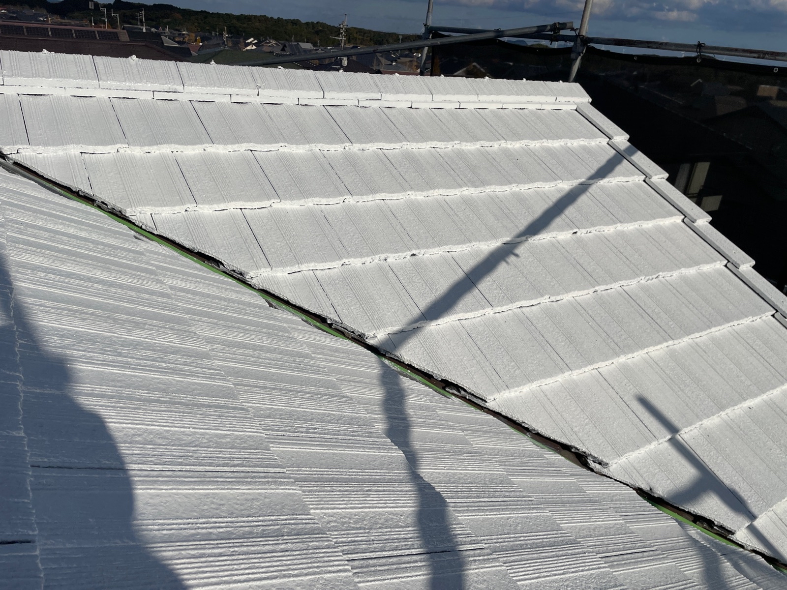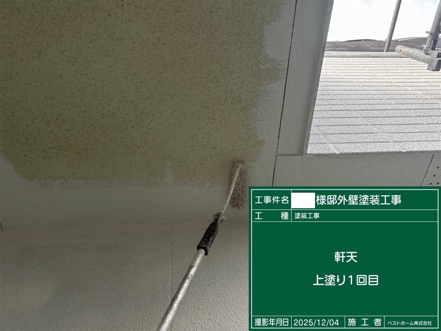 ◎中間検査、屋根上塗り1回目、外壁上塗り1回目、軒天塗装