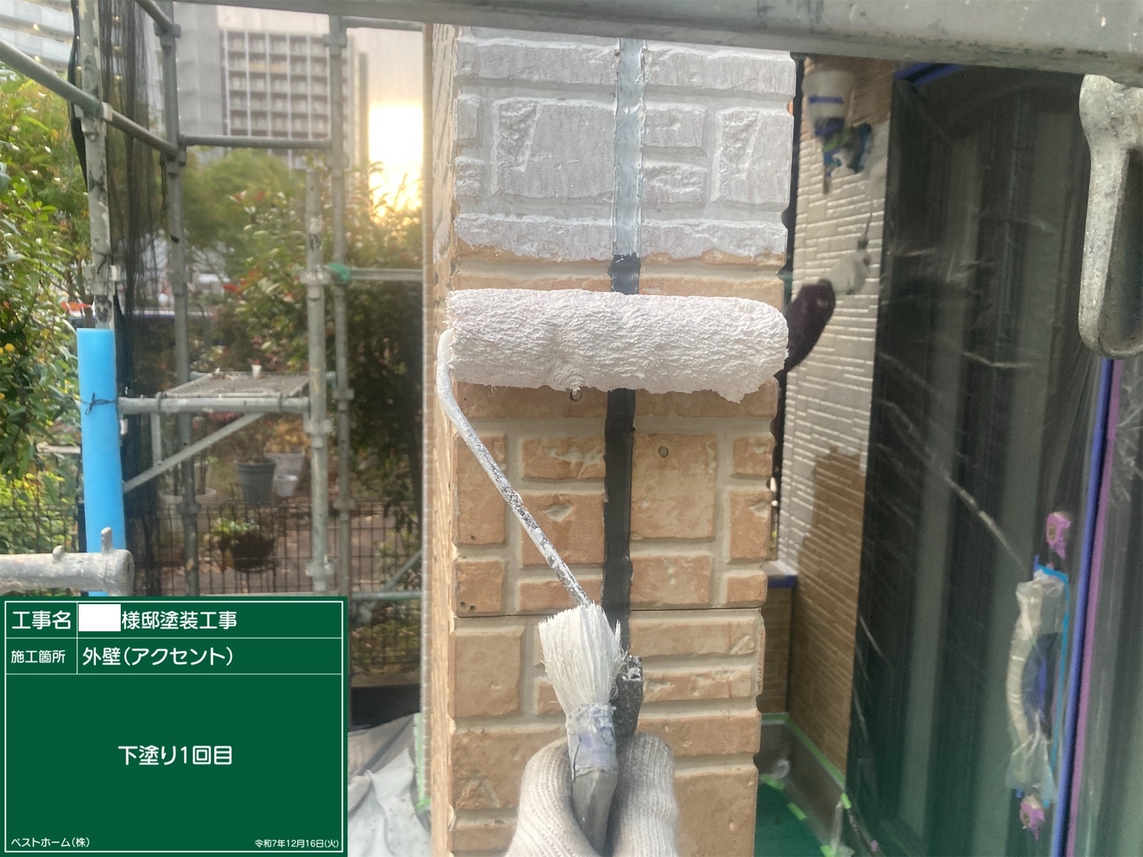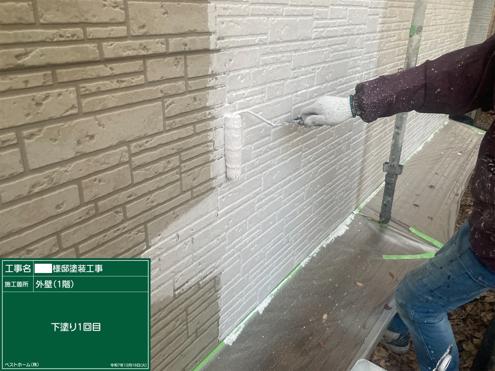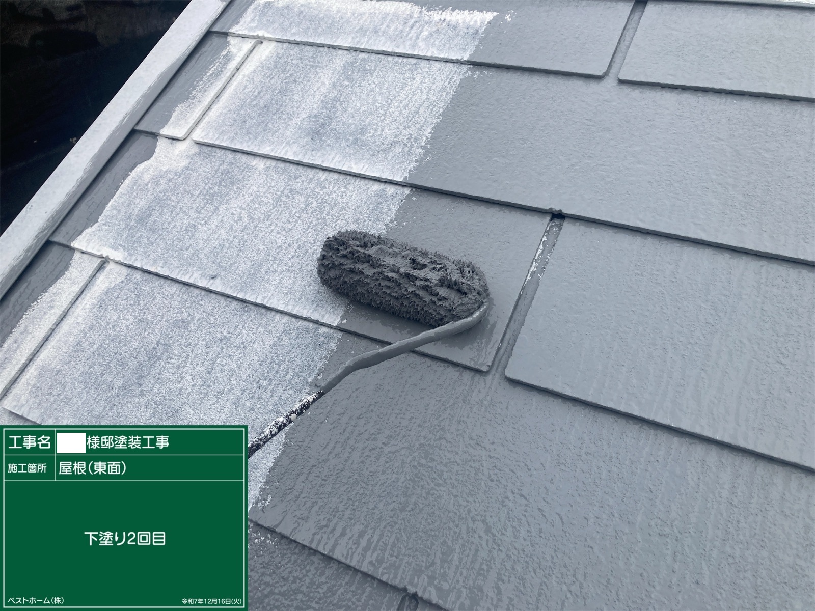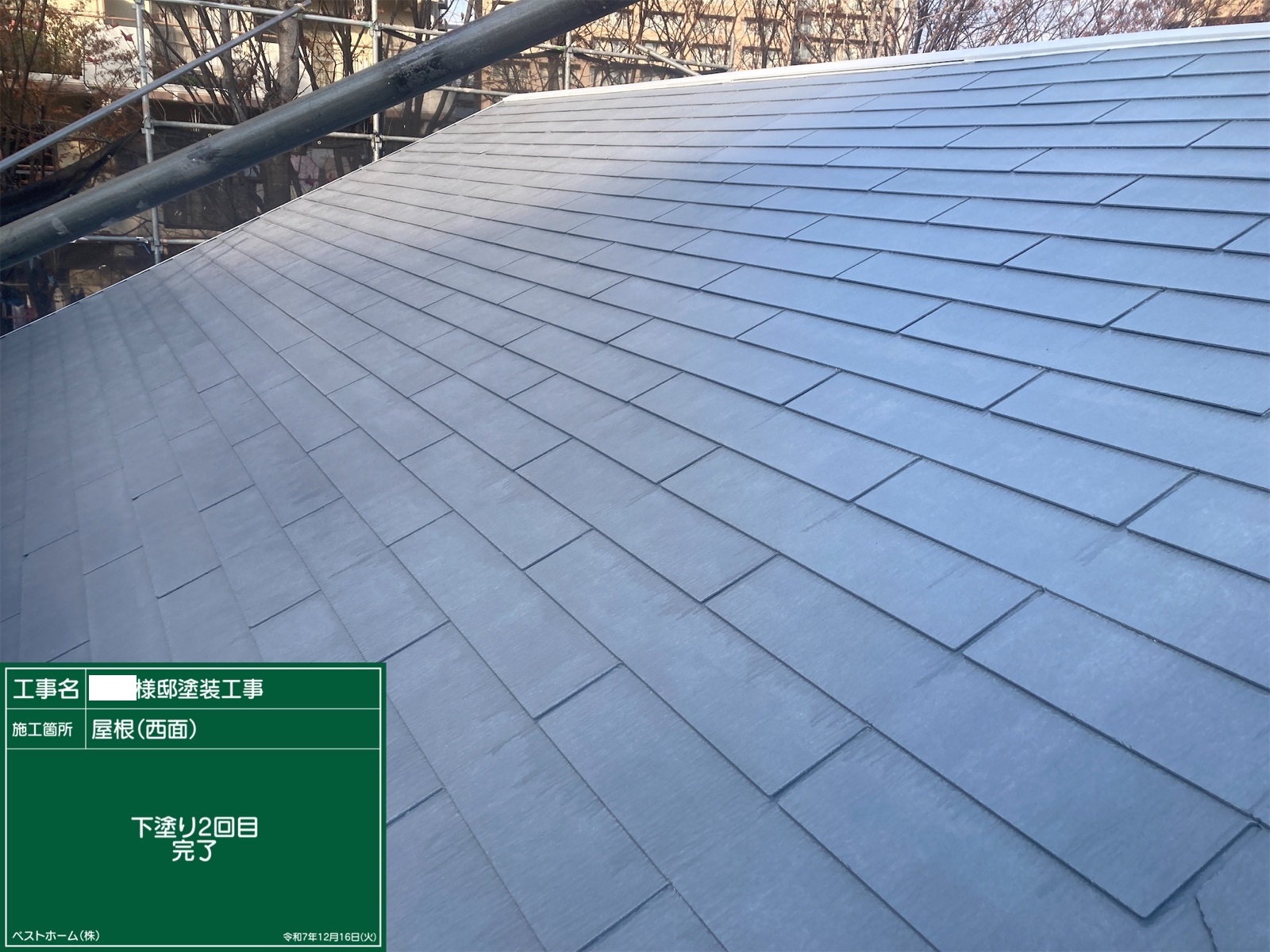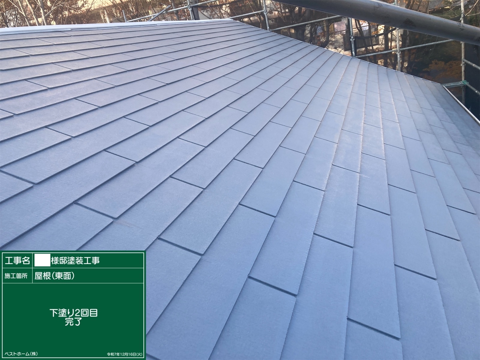 ◎外壁下塗り2回目・中間検査、屋根上塗り1回目、付帯塗装