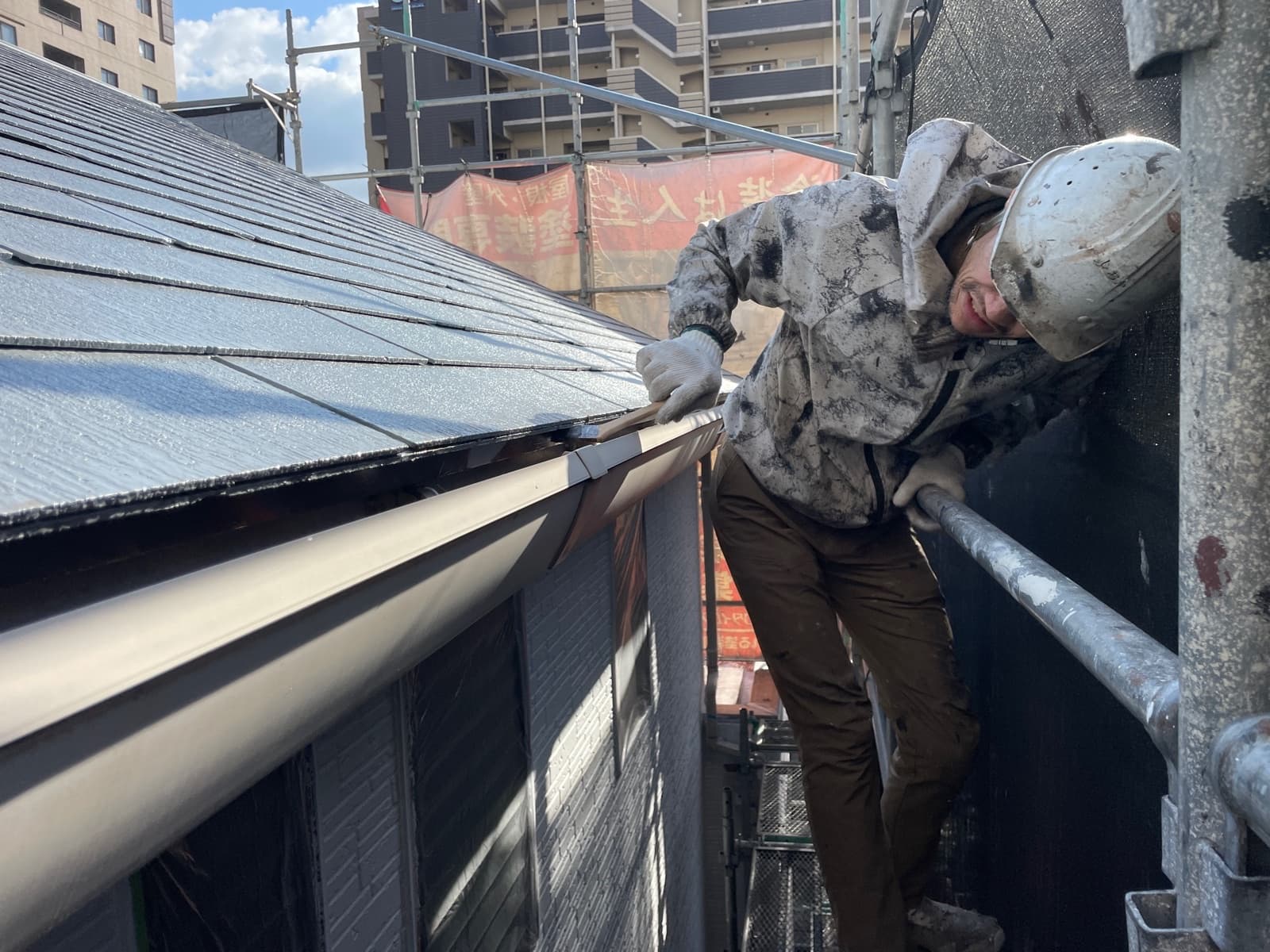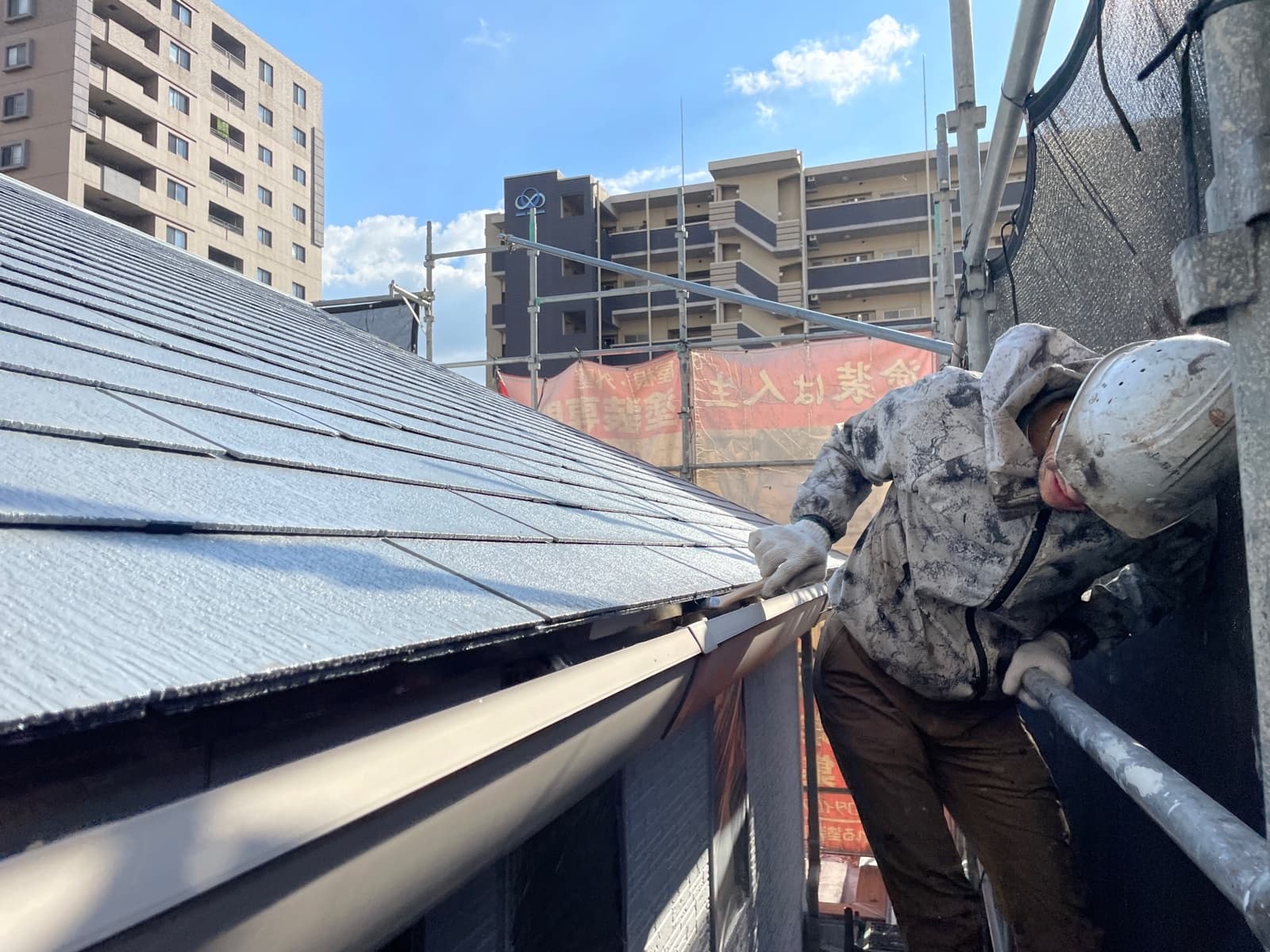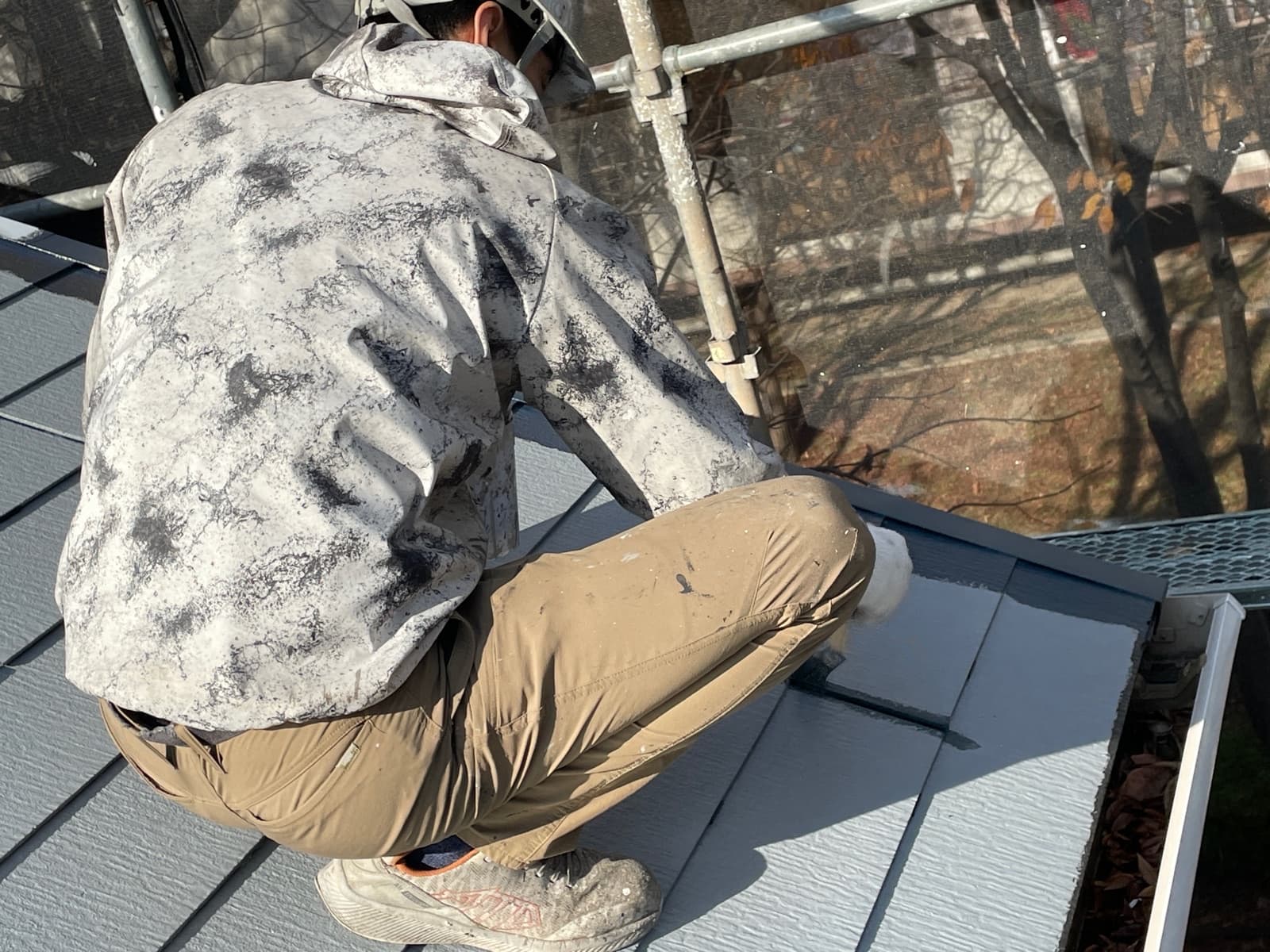 本日は外壁上塗り2回目、屋根上塗り2回目、付帯塗装をさせて頂いております。