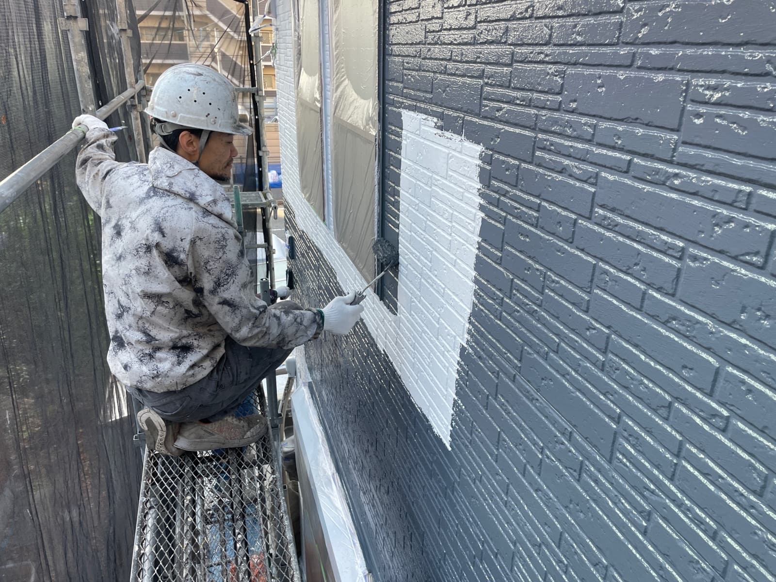 本日は外壁下塗り2回目・中間検査、屋根上塗り1回目、付帯塗装をさせて頂いております。