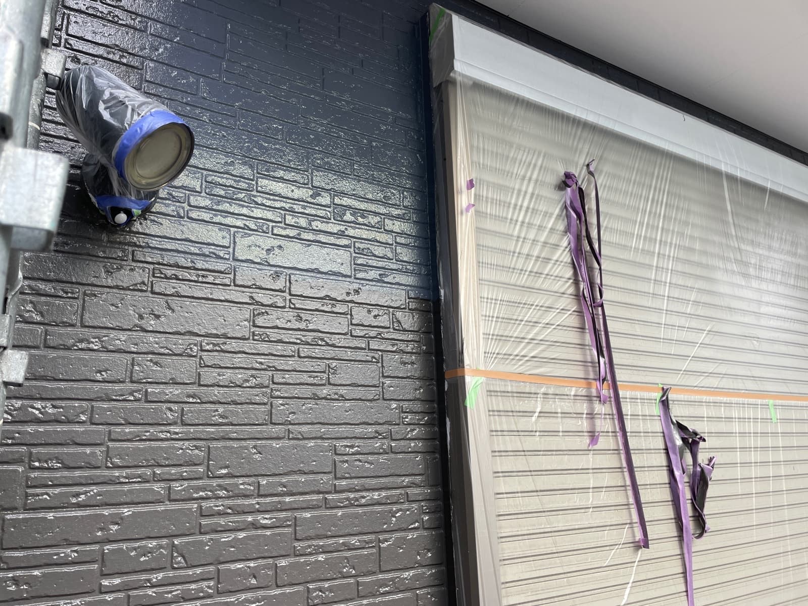 本日は外壁上塗り1回目、屋根上塗り2回目(途中)をさせて頂いております。