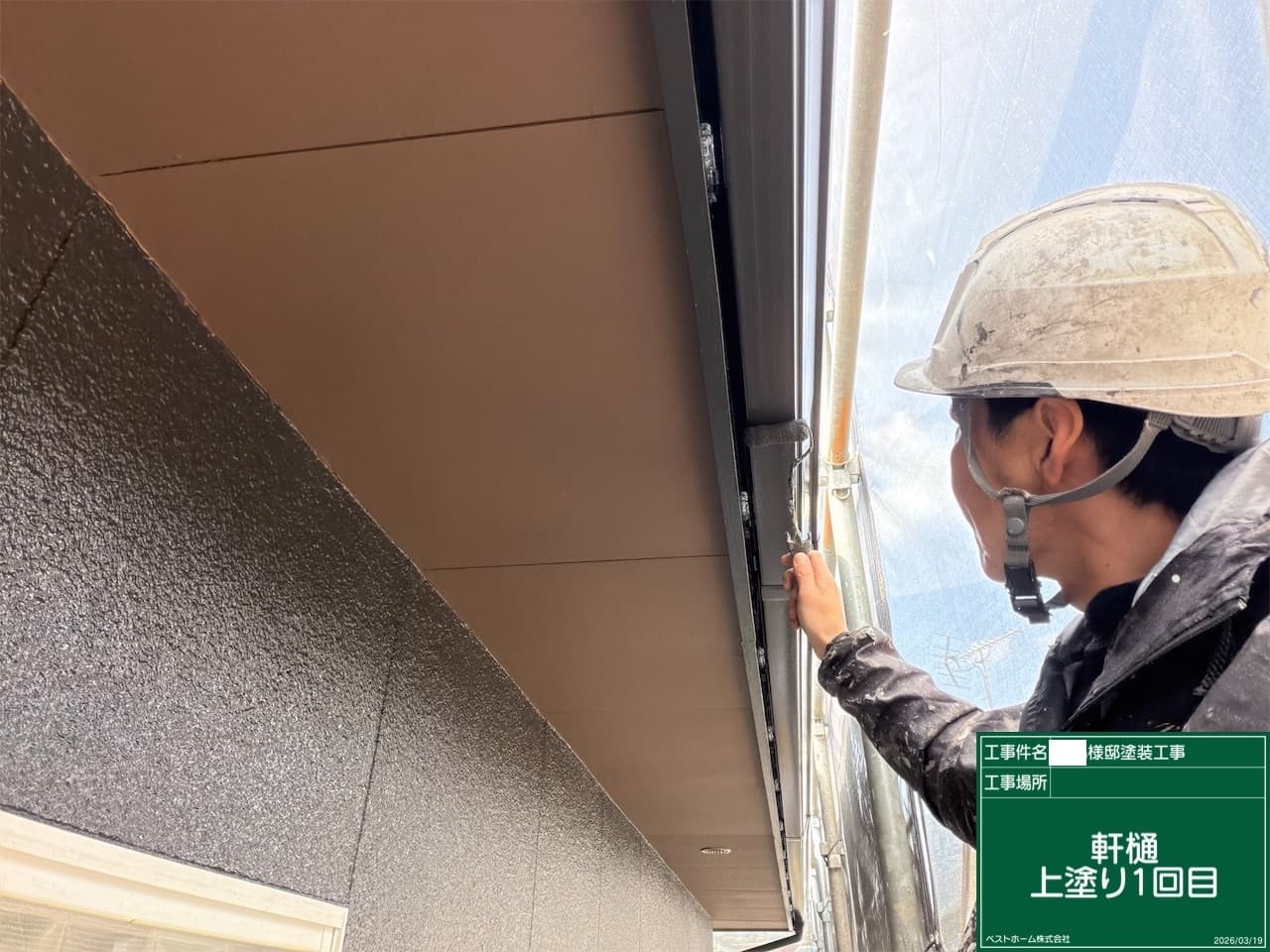 ◎外壁上塗り1回目、軒天塗装