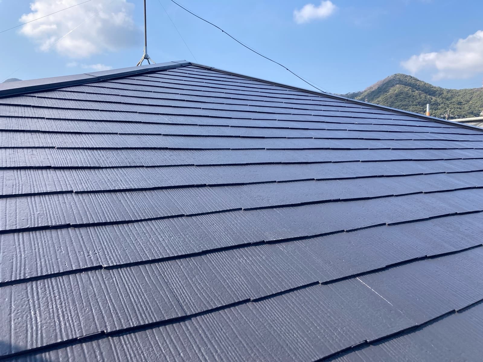 本日は屋根上塗り2回目、養生バラシ、付帯塗装をさせて頂いております。