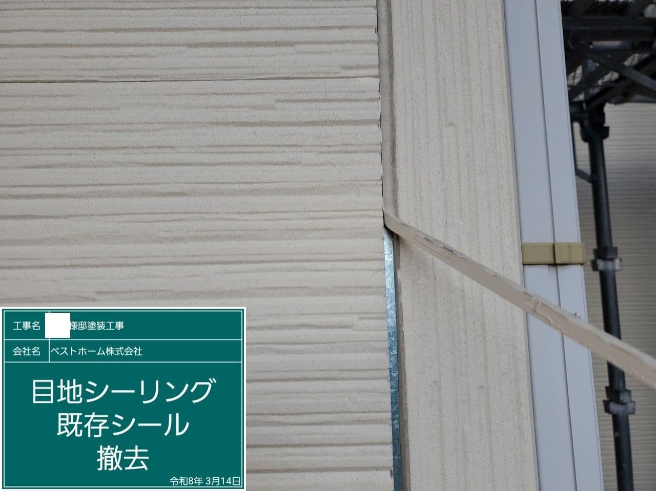 本日は高圧洗浄、シーリングの撤去をさせて頂いております。