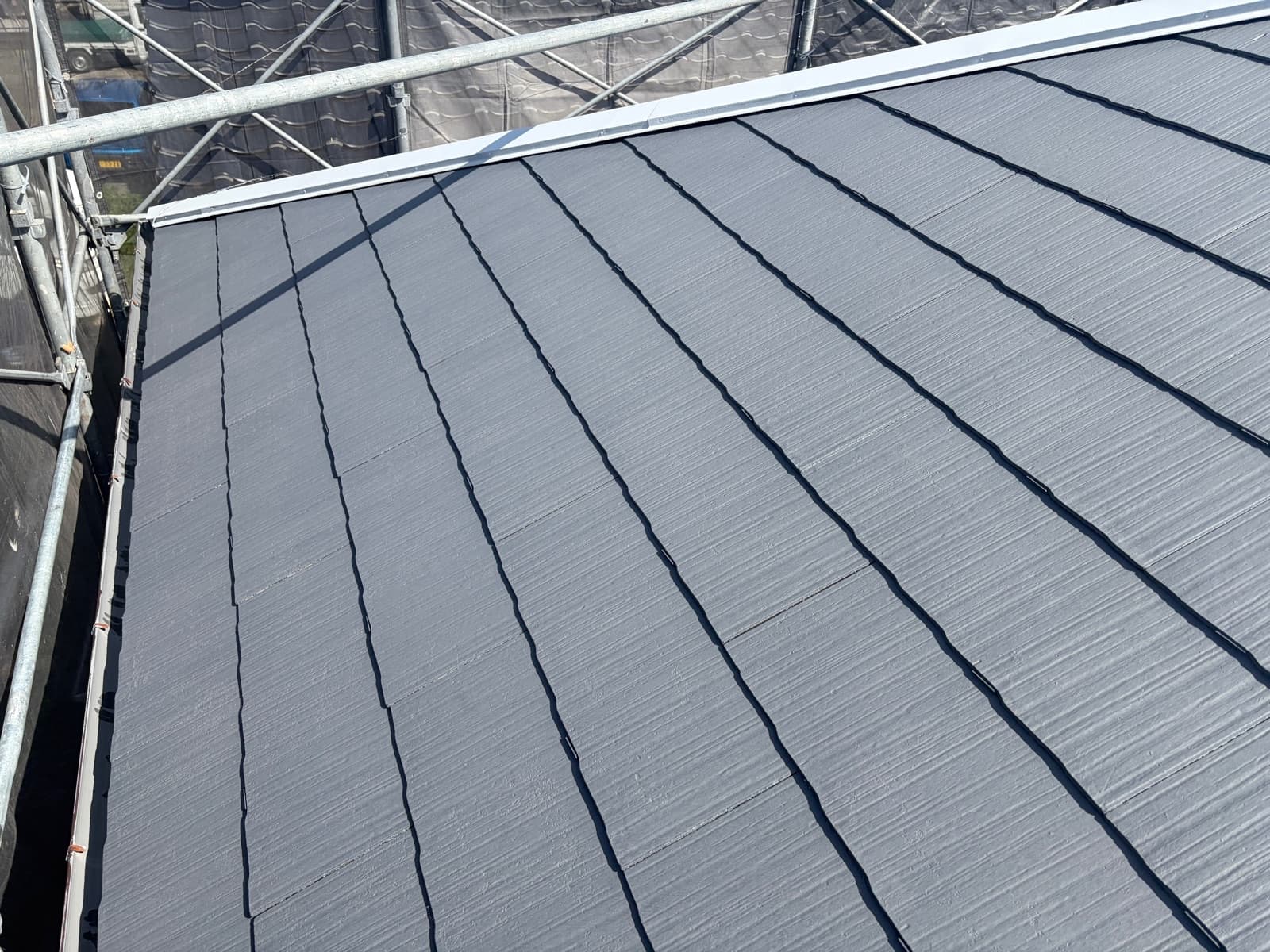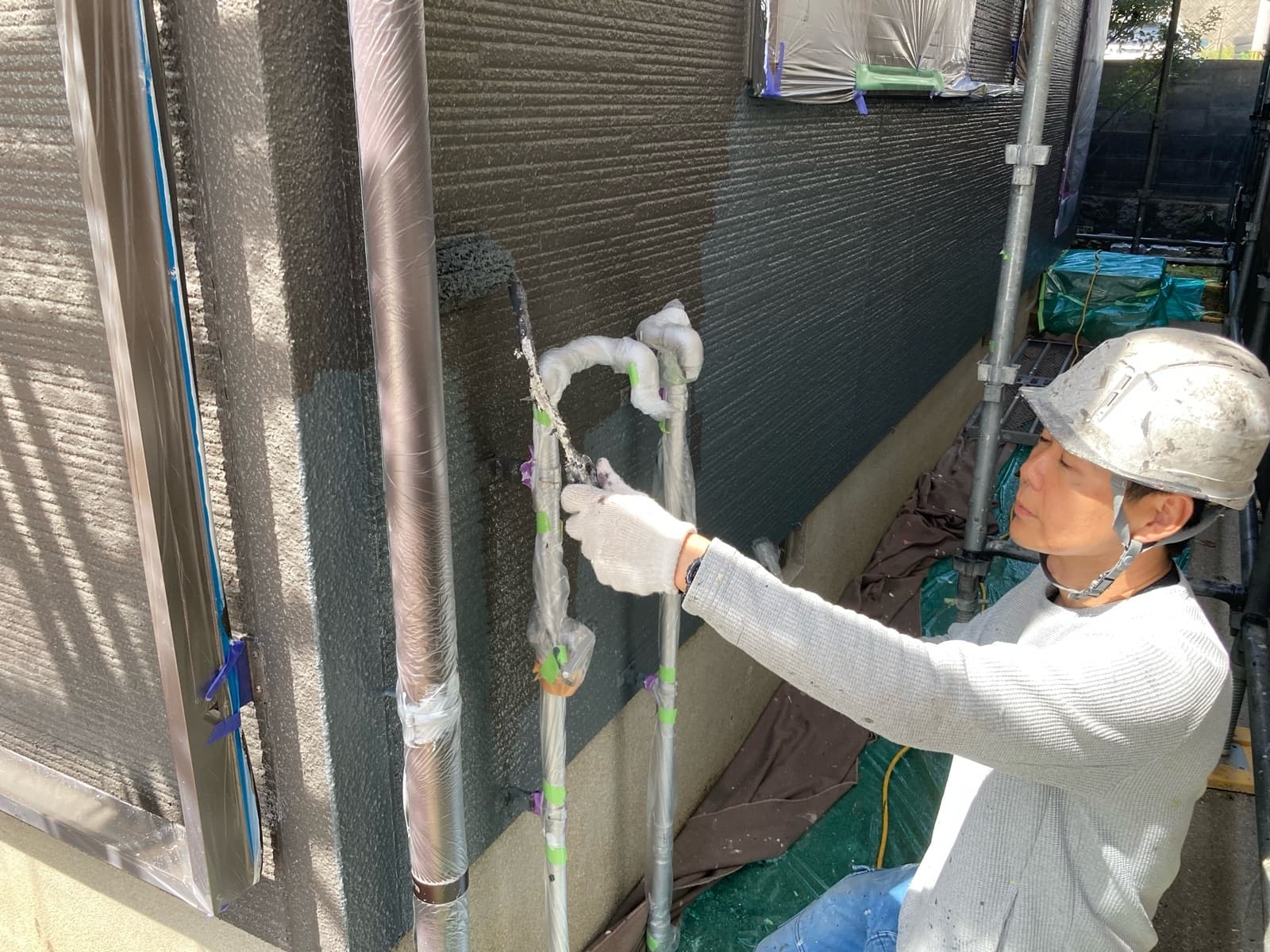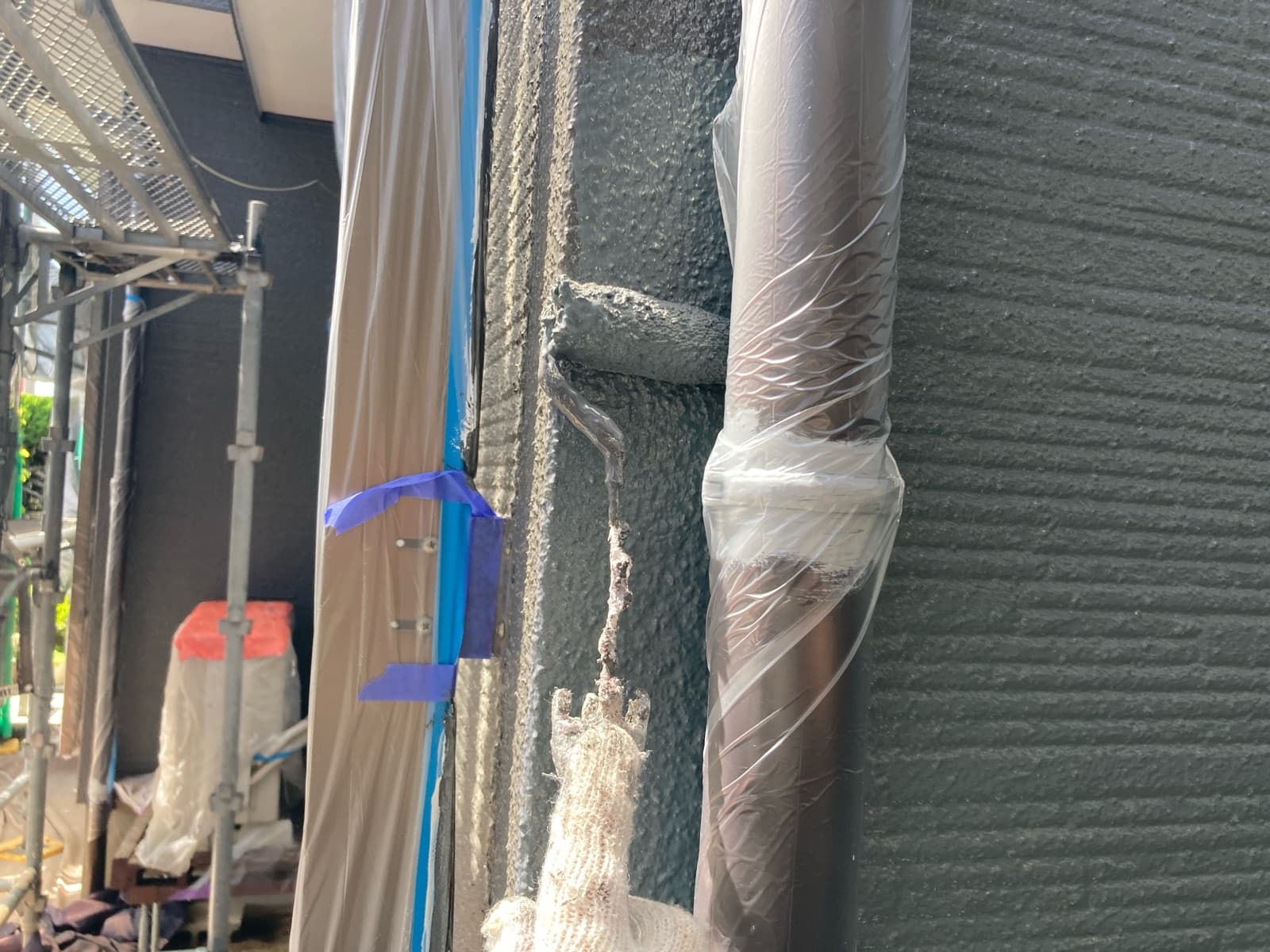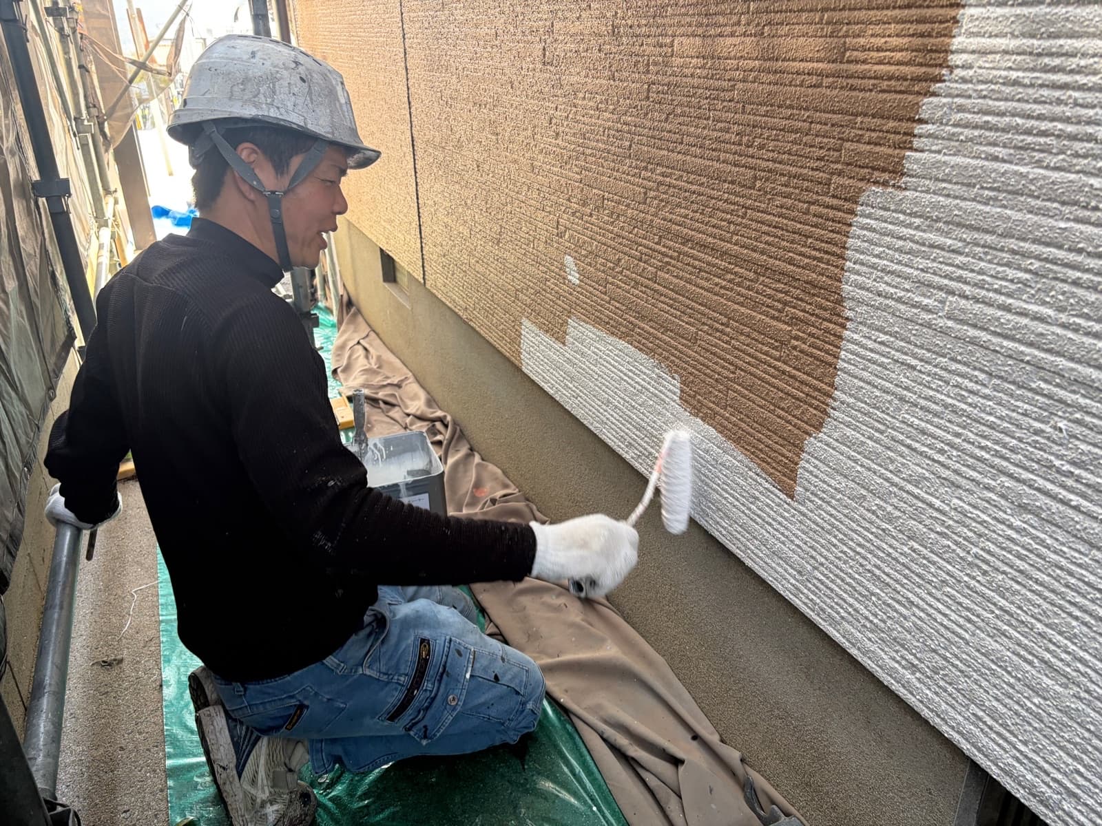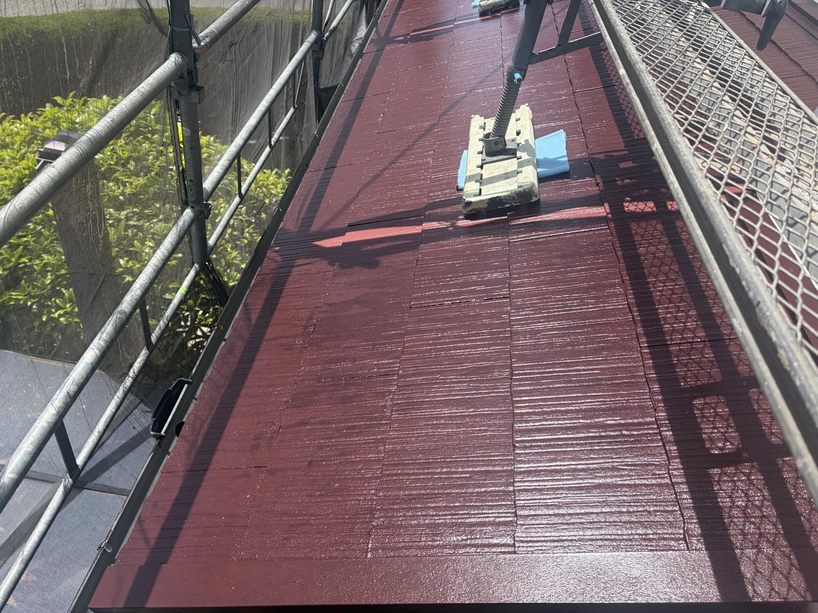本日は屋根上塗り2回目、外壁上塗り2回目をさせて頂いております。