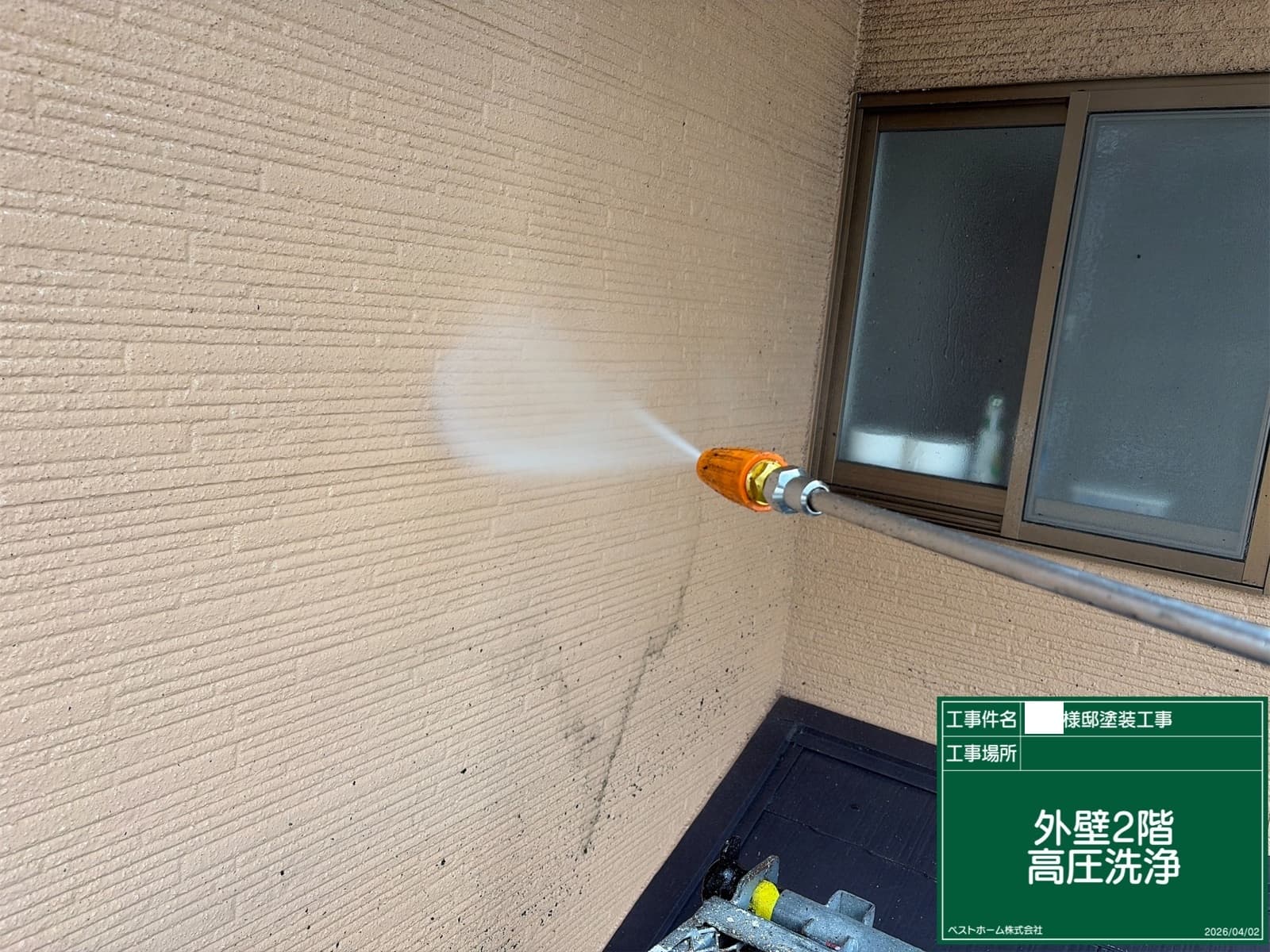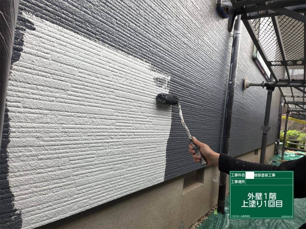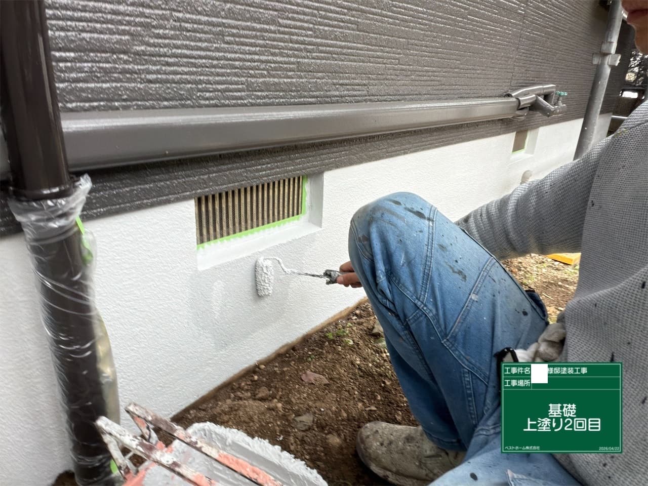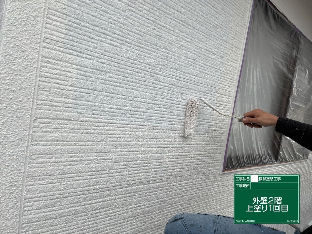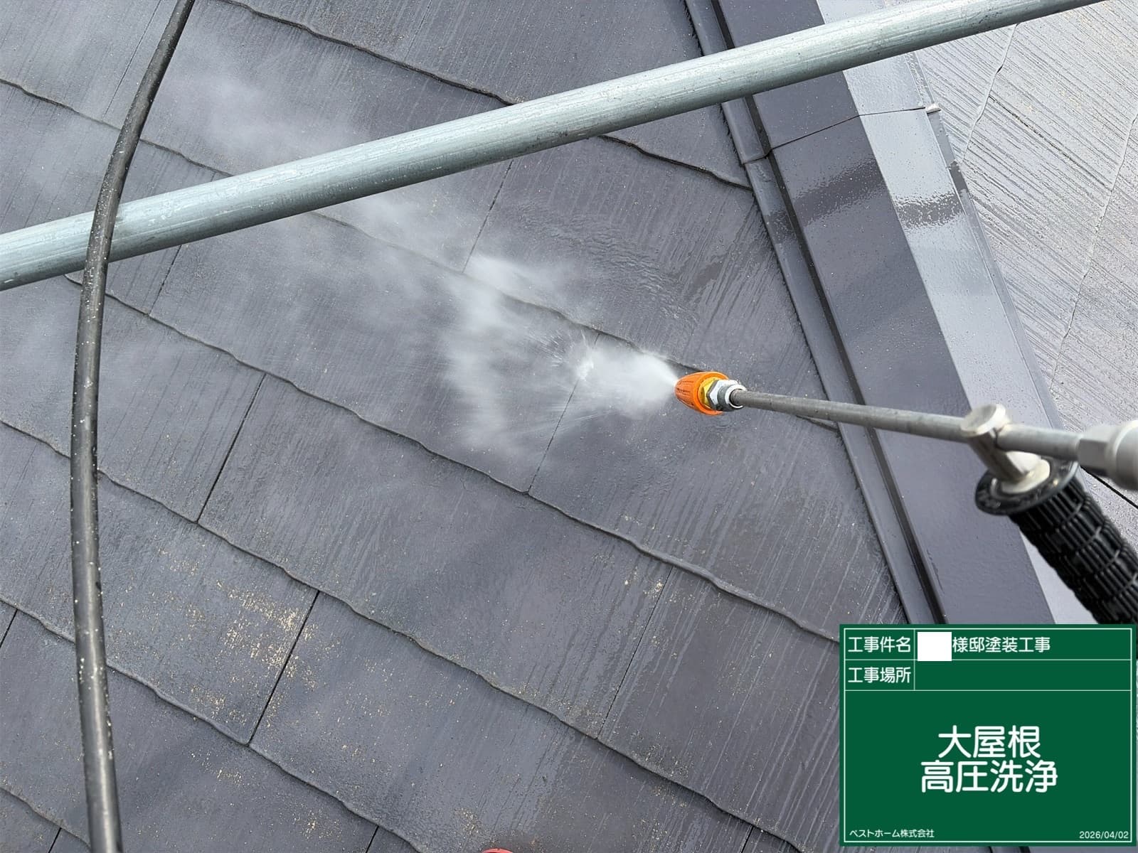 本日は屋根上塗り2回目、外壁上塗り2回目をさせて頂いております。