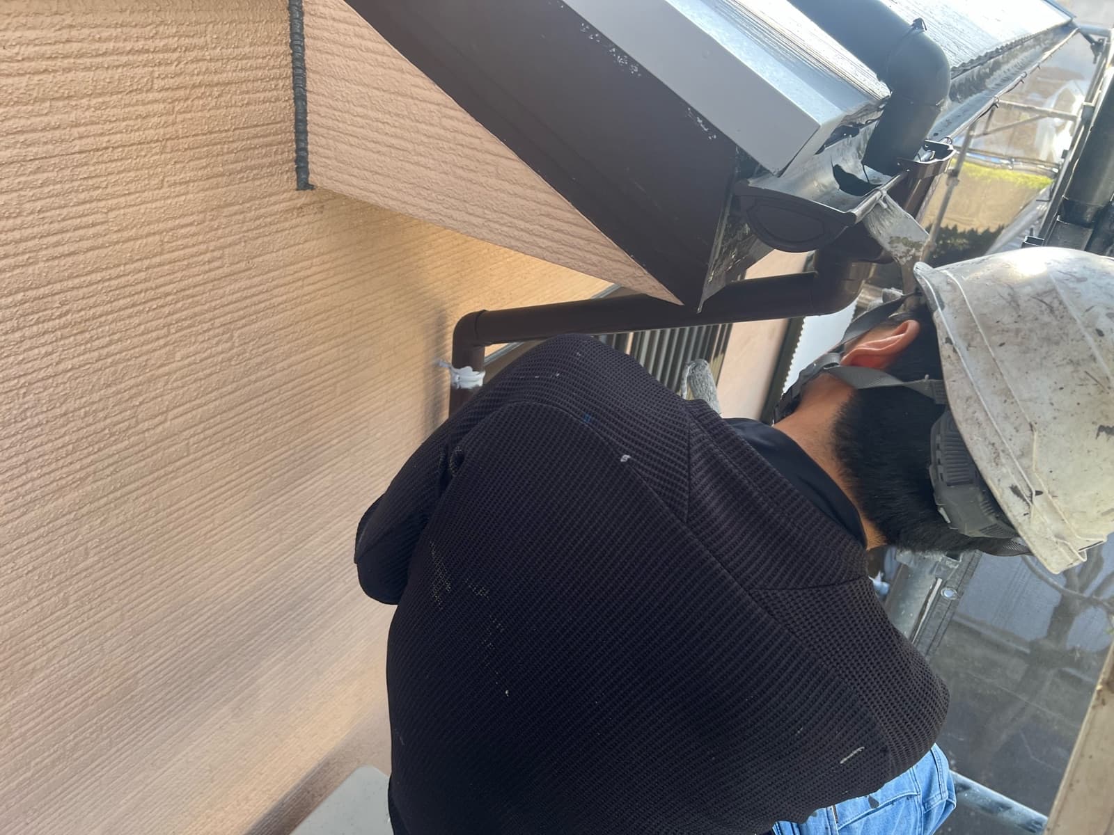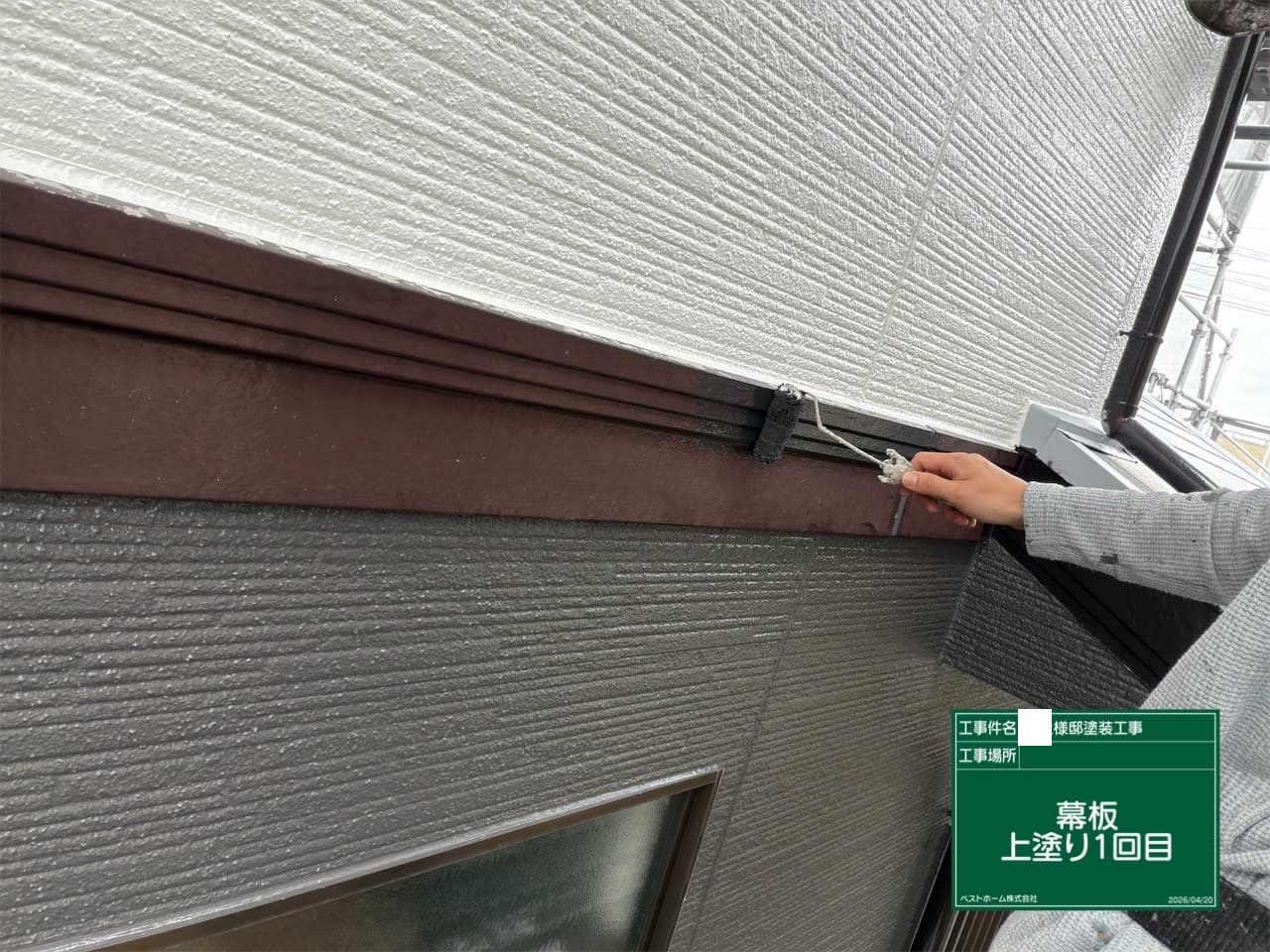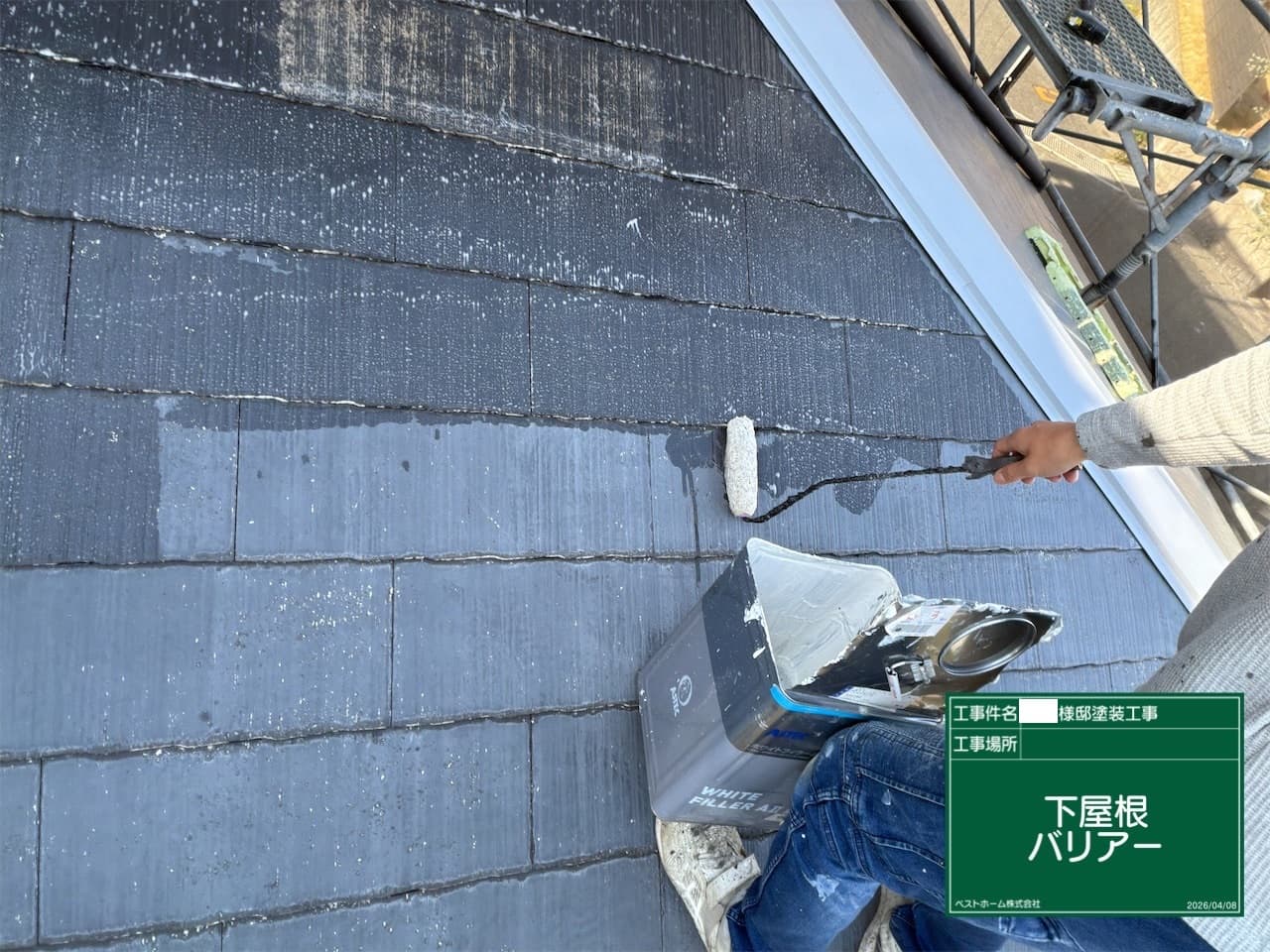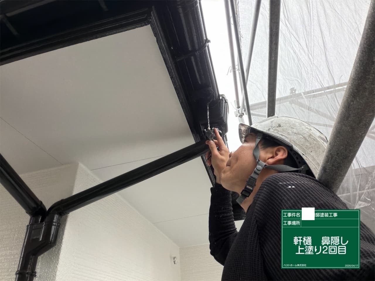 本日は付帯部塗装、下屋根上塗り1回目をさせて頂いております。