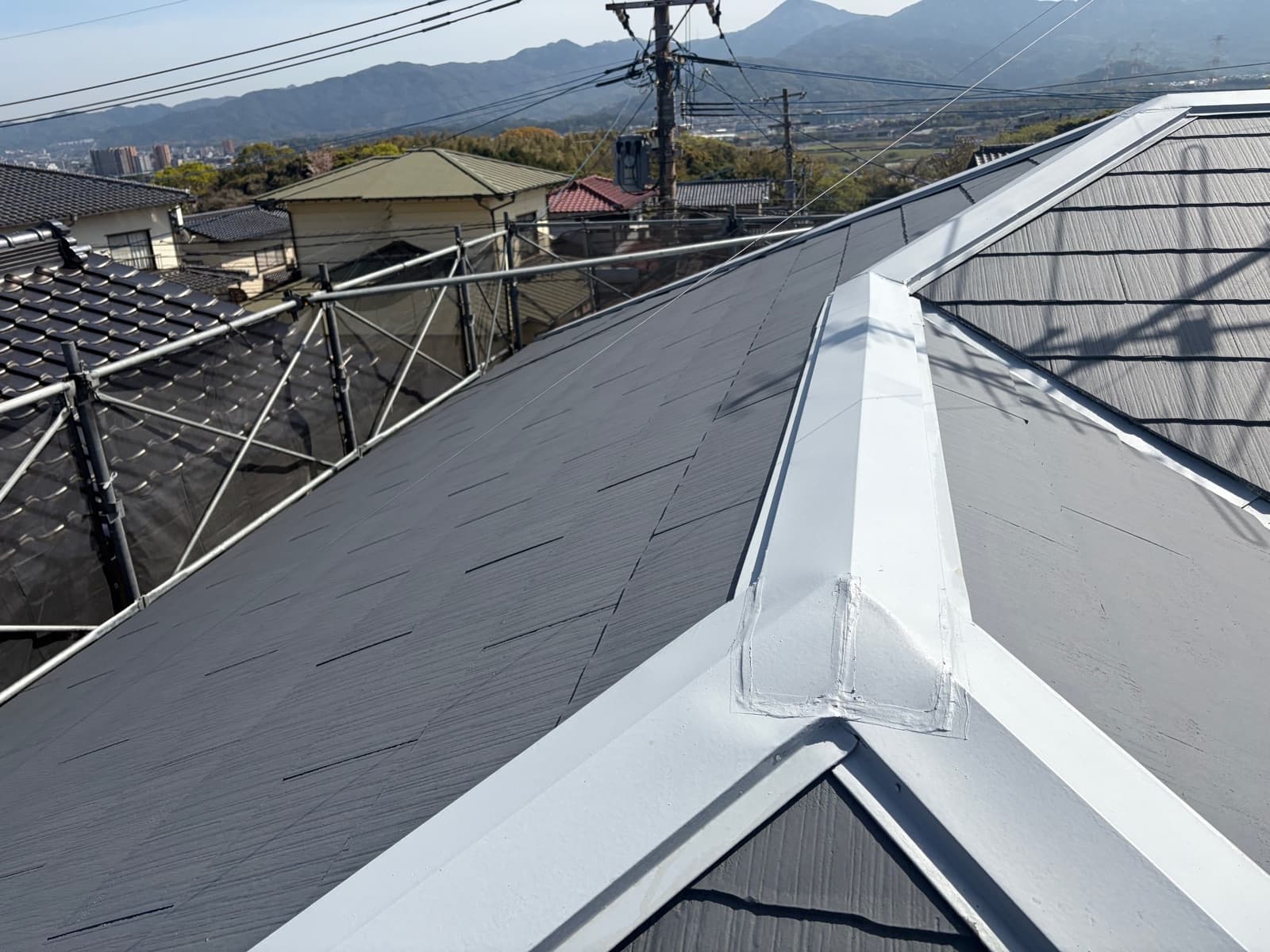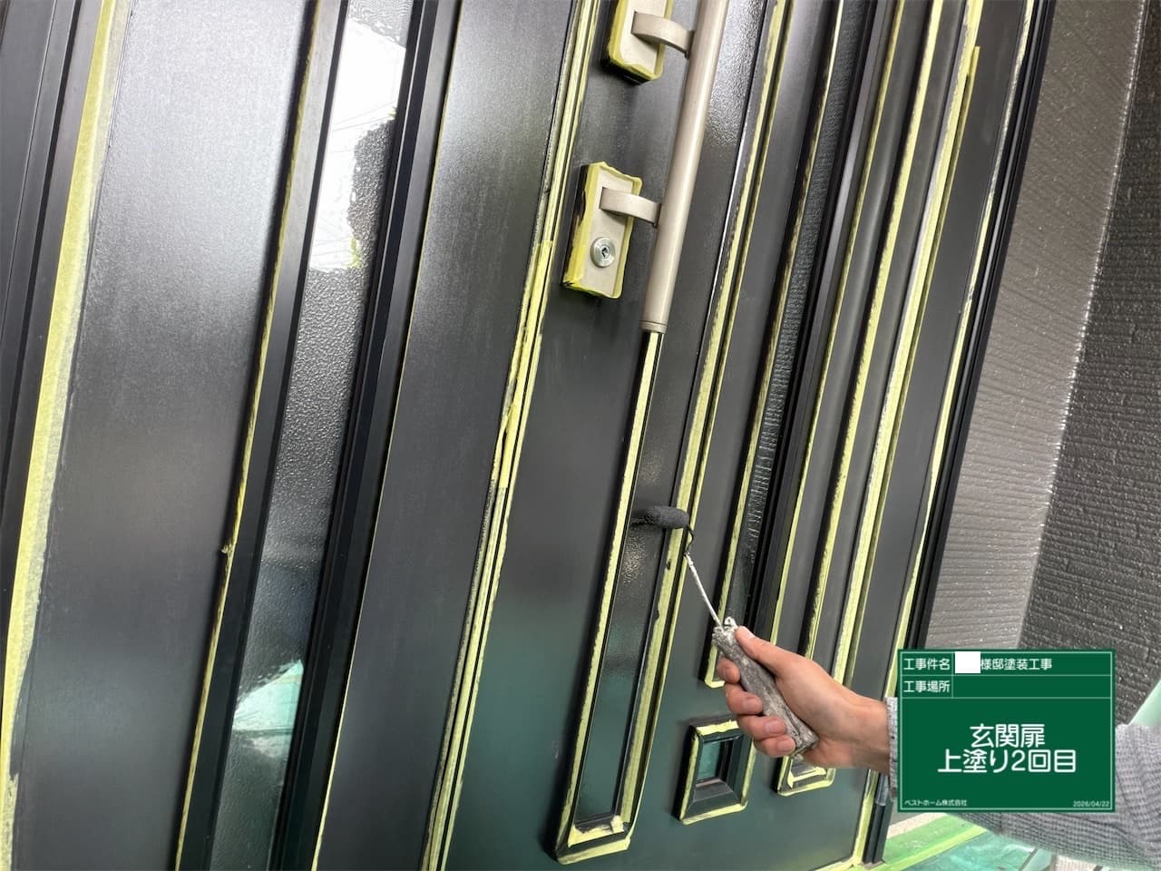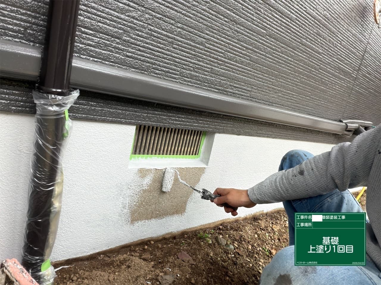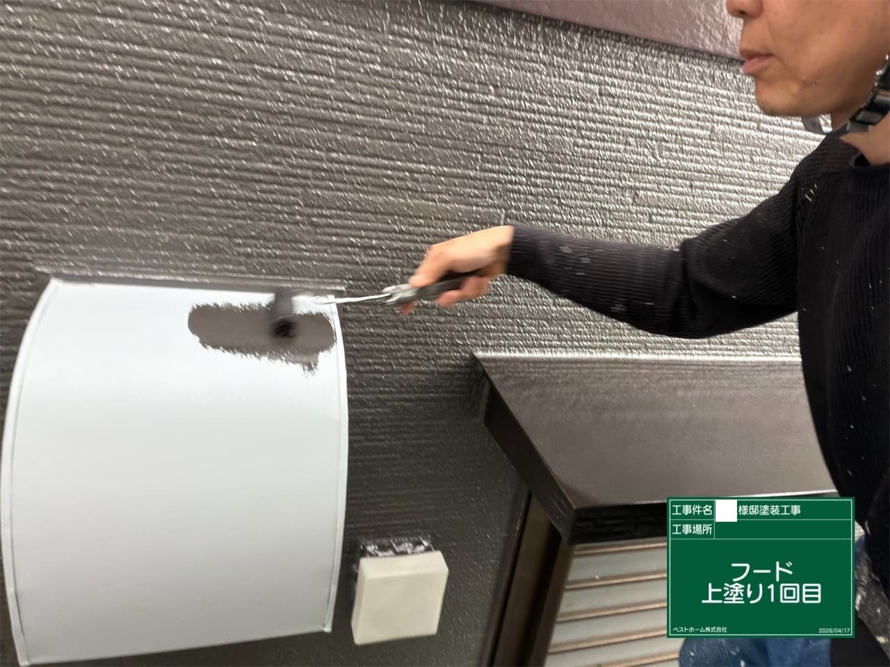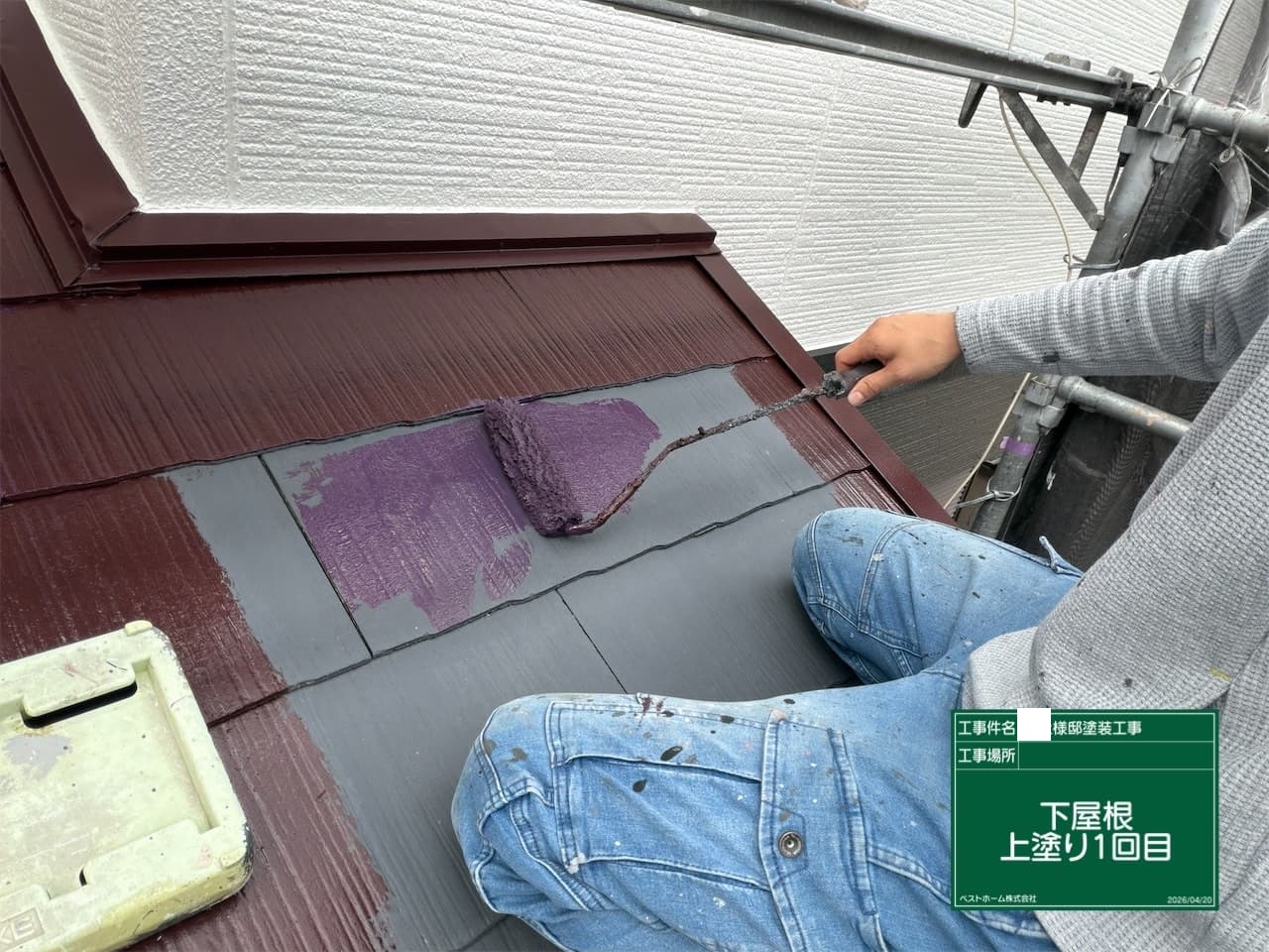 本日は付帯部塗装、下屋根上塗り1回目をさせて頂いております。