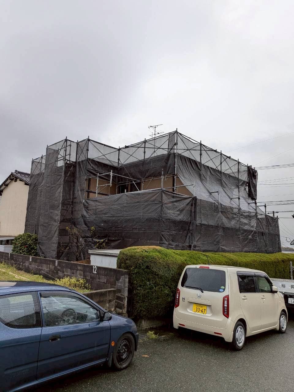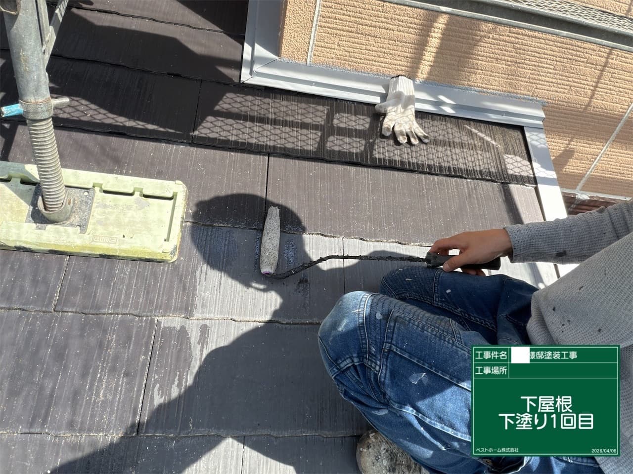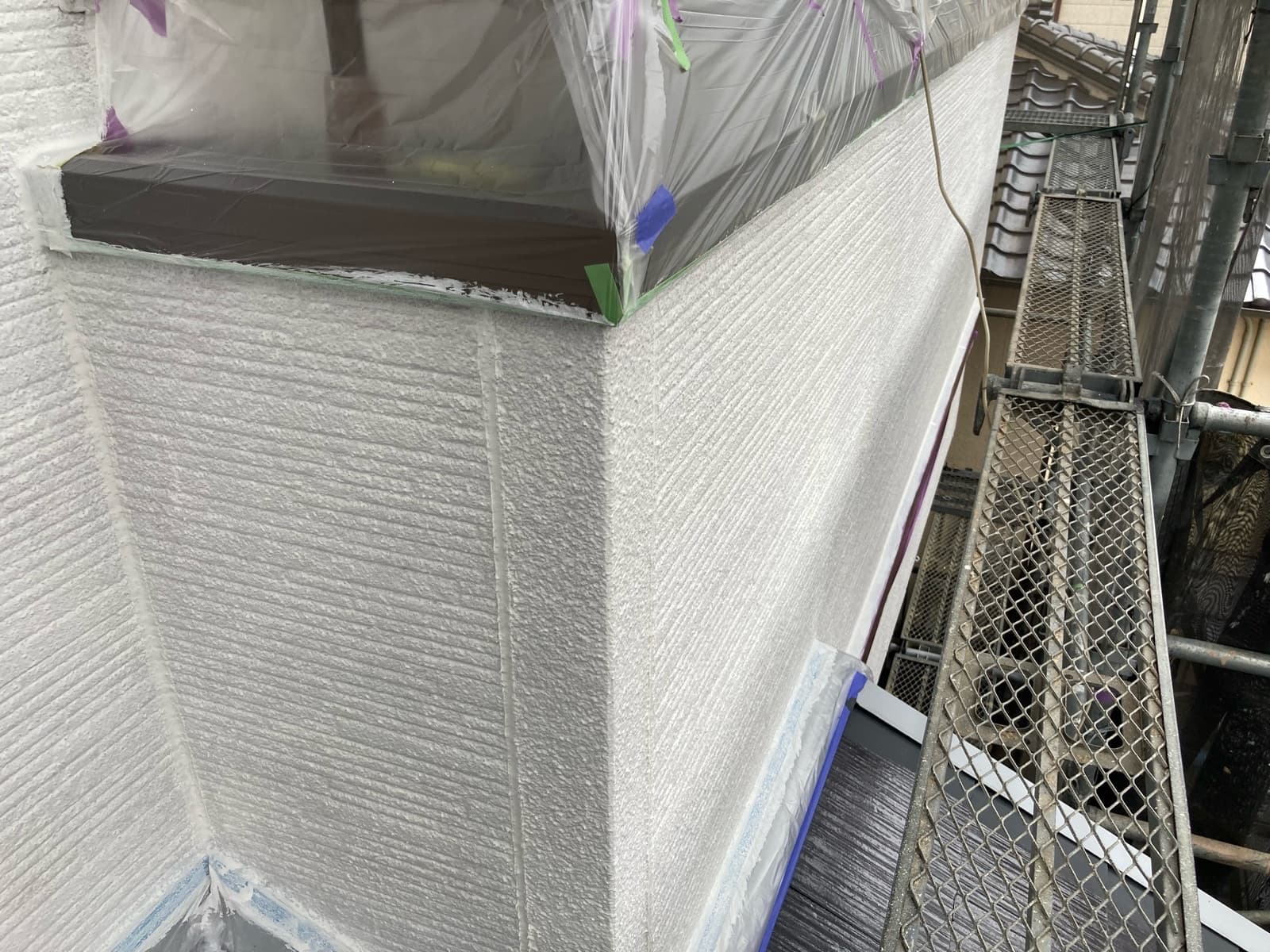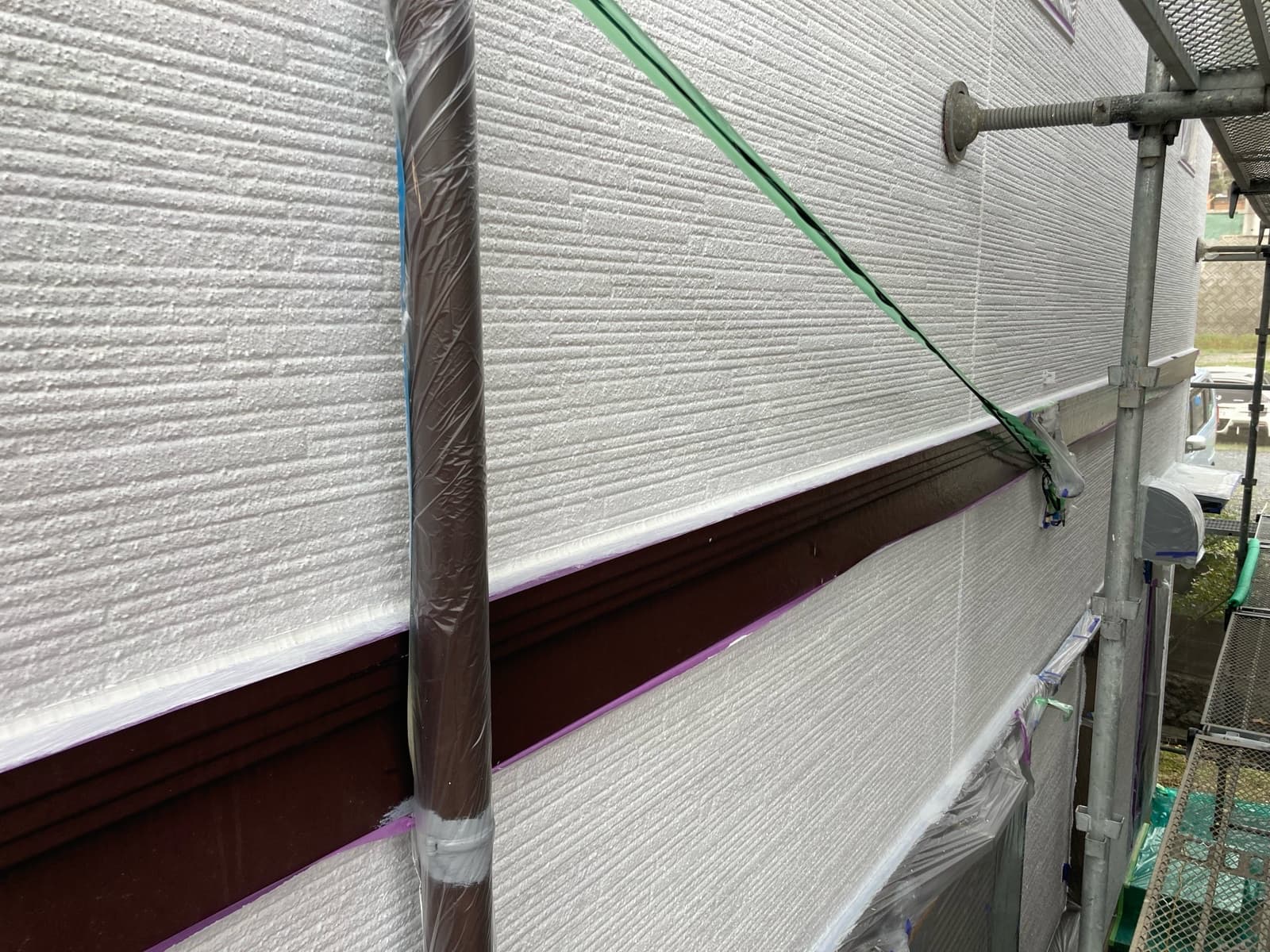 本日は屋根下塗り2回目、中間検査、外壁下塗り1回目をさせて頂いております。