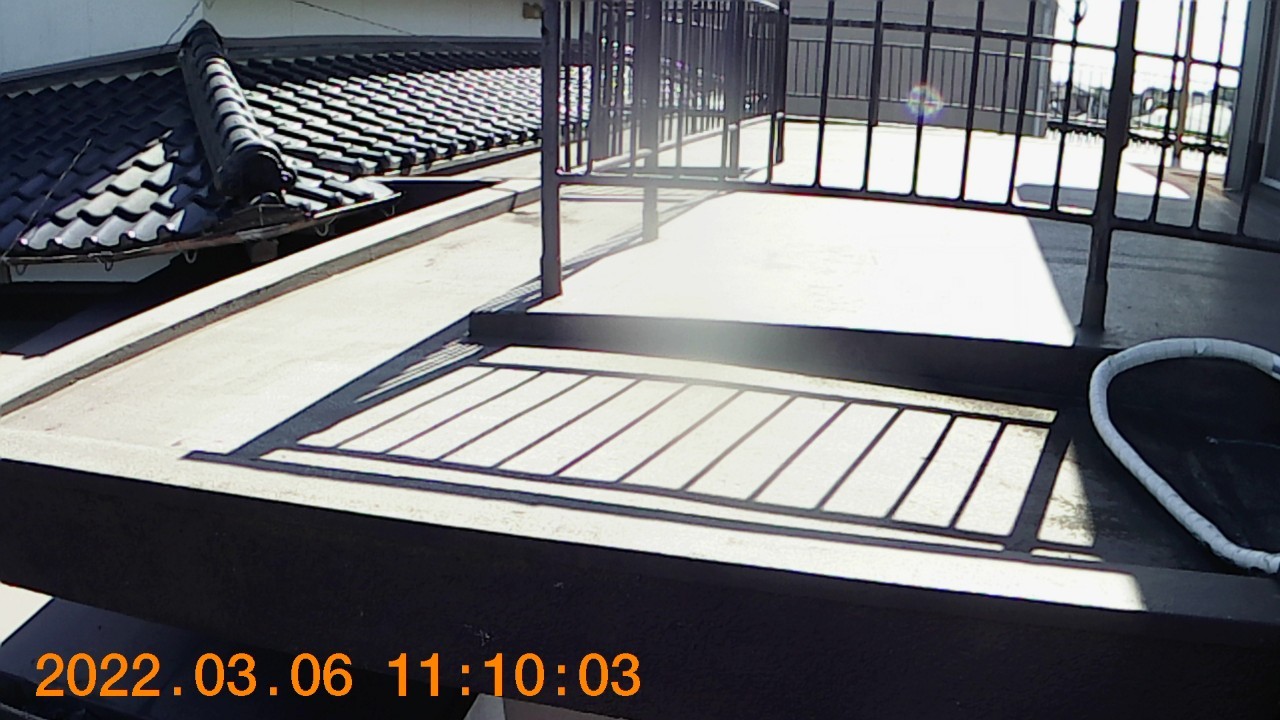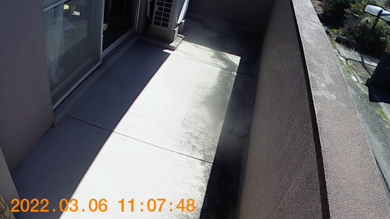 角度的にドレンをカメラで確認することができませんでしたが、ベランダの右側中央の丸い塊と床汚れの具合からベランダでオーバーフローが起きている可能性があります。