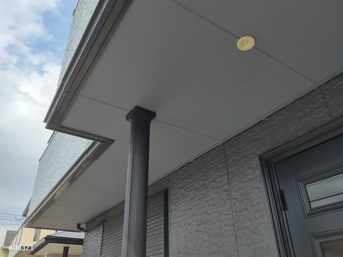 軒天の雨染みや剝がれもなく良好でした。樋もほとんど綺麗でした。雨戸は、少し錆が出ておりました。