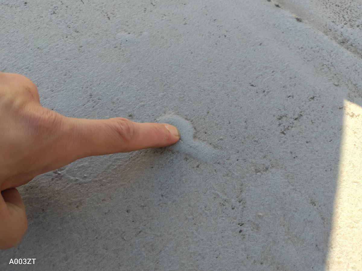塗膜の膨れがありますが、EC-100PCMの性能のおかげで割れておりませんので、防水上問題ないと判断致しました。