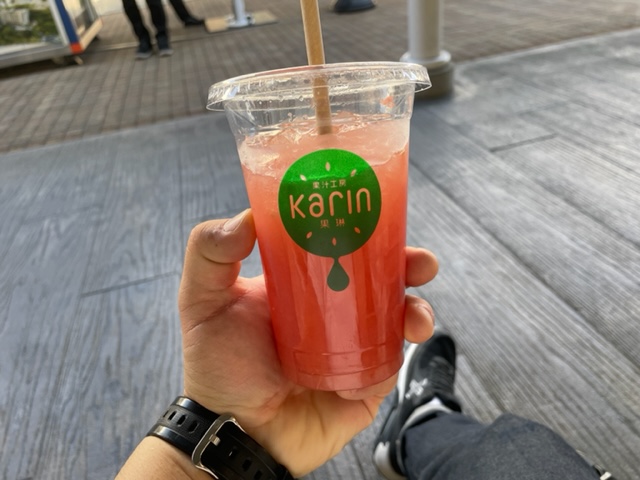 ピンクグレープフルーツジュースを2秒で飲んで帰りました。