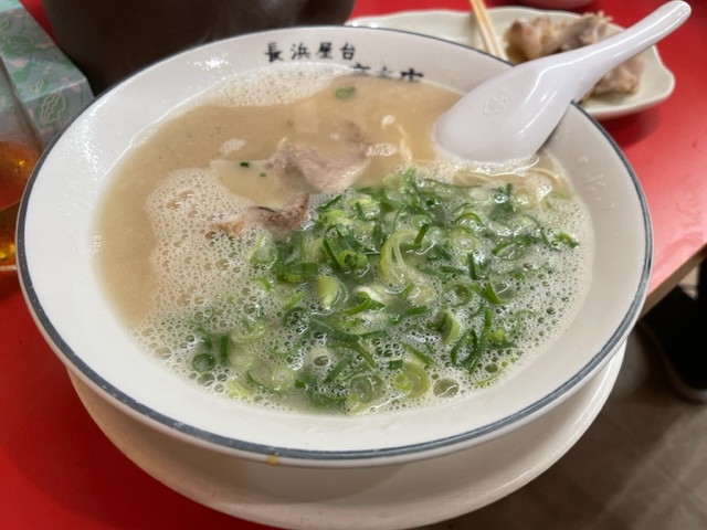 THE長浜スタイルな見た目からは想像できないくらいのあっさり豚骨と細麺で呑んだシメに最高でした!