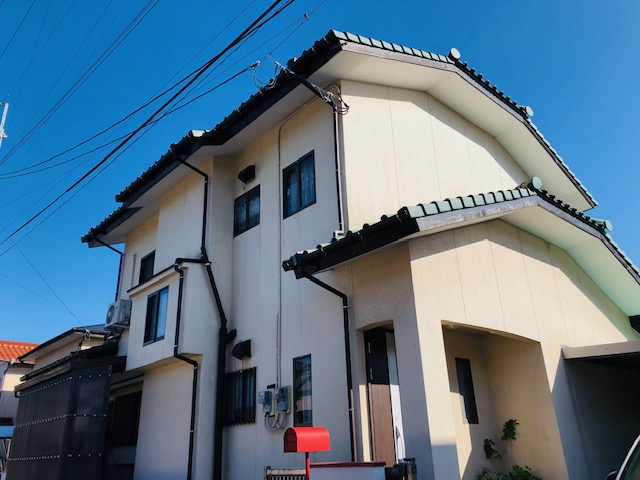 本日、京都郡みやこ町勝山大久保にてセメント瓦及びモルタル外壁塗装から8年後の定期点検にお伺いしました。
