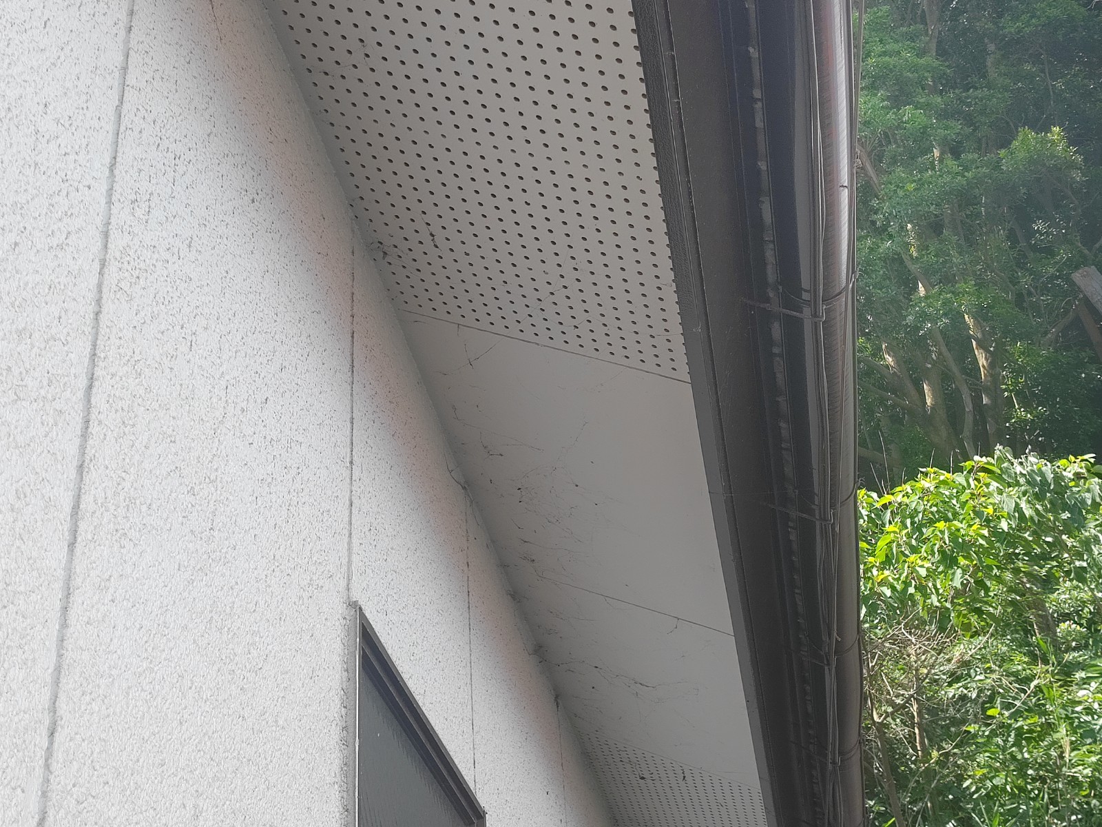 軒天の雨染みや剝がれもなく良好でした。樋も綺麗でした。