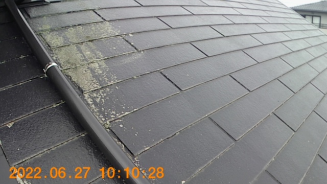 樋の中は全体的に綺麗でした。部分的には苔が見られましたが、まだまだ塗装時期ではありません。