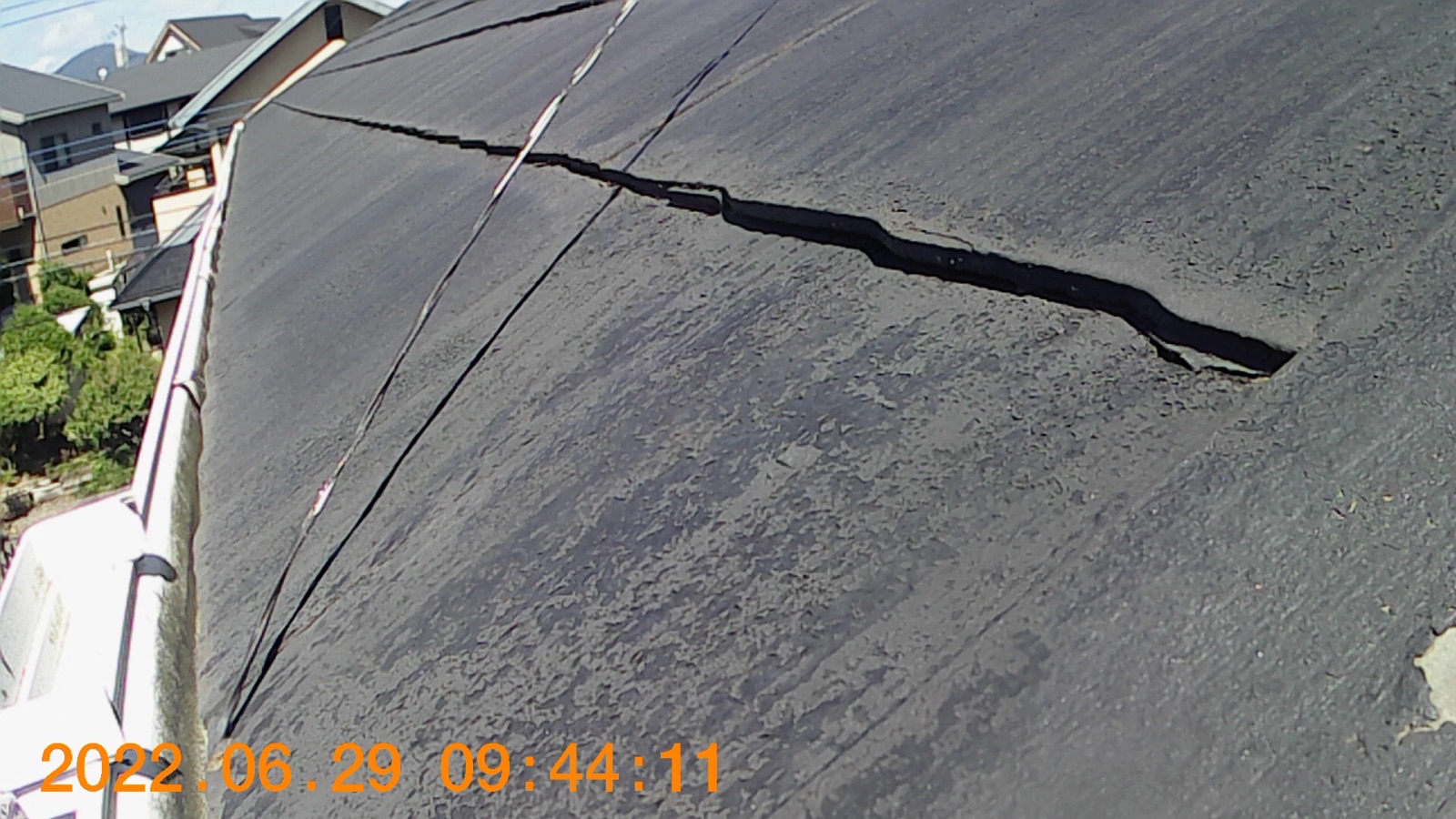 屋根塗装の時期が来ているようですのです、今の状態は高圧洗浄で全て剝げてしまうぐらいしか塗膜が残っていませんとお施主様に報告させていただきました。