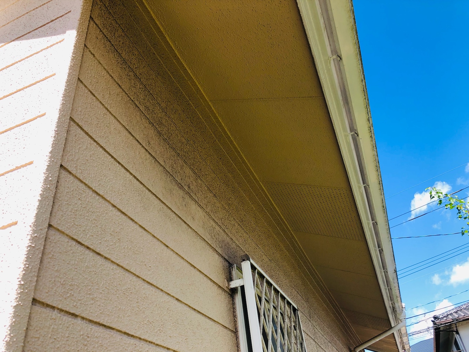 雨のあたる箇所は、チョーキングは出ていますが汚れは目立ちません。