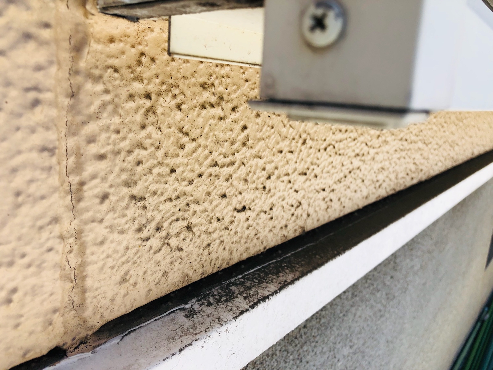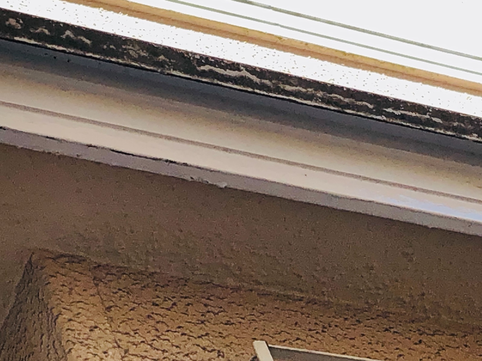 軒下y出窓の下などの雨の当たらない箇所は、埃などがたまりやすく、汚れてしまっています。