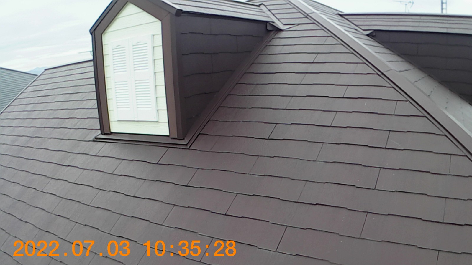 4年前は、期待耐候年数 20~24年(暴露環境推定耐用年数 14~17年)の耐久力を持つ【水性形二液屋根用低汚染遮熱無機成分配合フッ素系上塗材】を使用しました。
