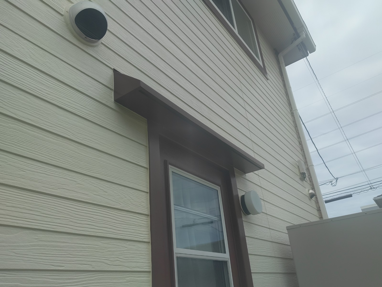 軒天井・・・軒裏天井には透湿性と言って、防カビ・アク止め、湿気を逃がしてくれる効果がある「弱溶剤形一液内外壁用アクリル系上塗材 」と言う塗料を使用しています。