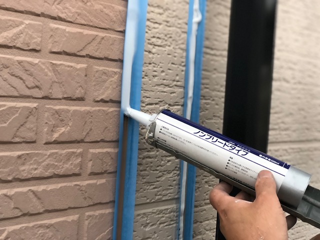 余分なところにコーキング材が付かぬようまっすぐなコーキングが打てるよう養生を行います!