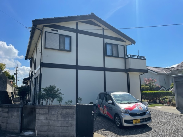 本日、岡垣町にてサイディング外壁塗装から10年後の定期点検にお伺いしました。