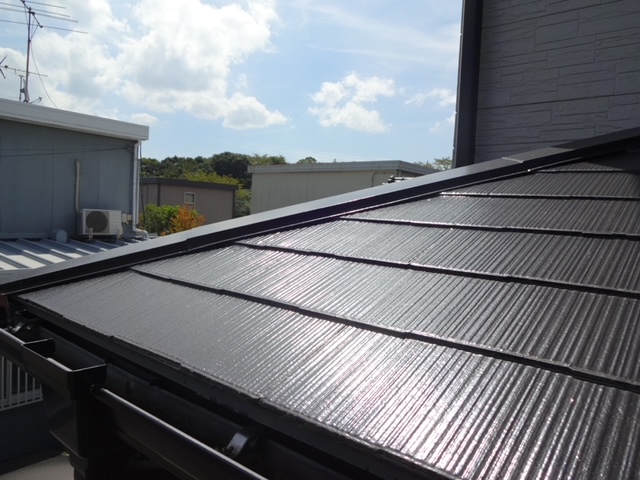 本日、筑紫野市にてコロニアル屋根及びサイディング外壁塗装から3年後の定期点検にお伺いしました。