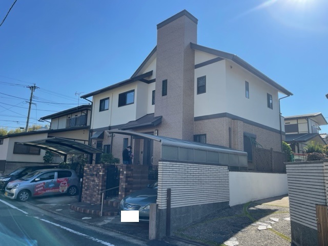 本日、福岡市にてコロニアル屋根及びサイディング外壁塗装から5年後の定期点検にお伺いしました。