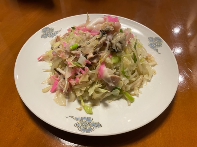 ちゃんぽんを焼うどん風にした作り方で、月並みな表現になりますが、