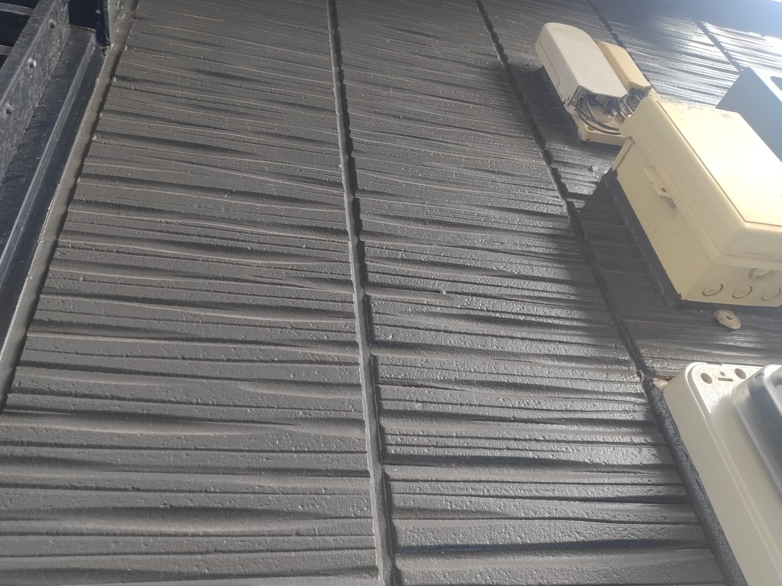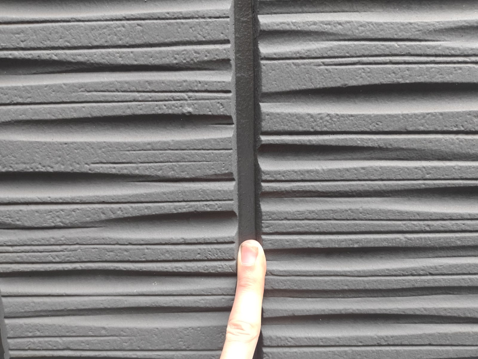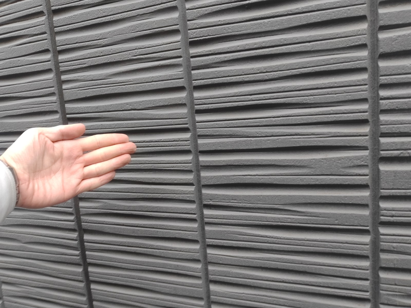 外壁は経年劣化しておりますが、チョーキング現象はございませんでした。日が当たりにくい場所は、艶も少し残っておりました。