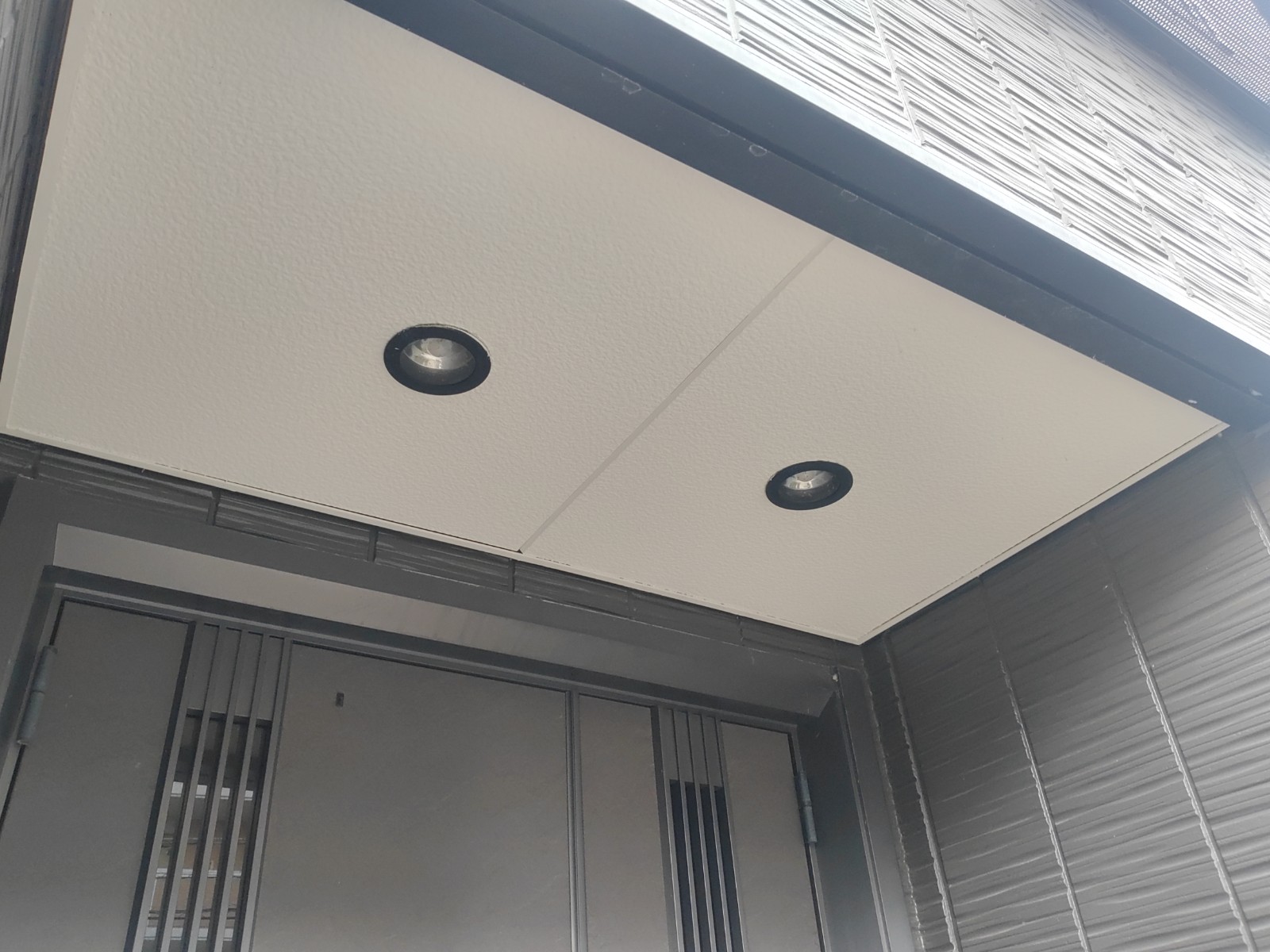 軒天井・・・軒裏天井には透湿性と言って、防カビ・アク止め、湿気を逃がしてくれる効果がある「弱溶剤形一液内外壁用アクリル系上塗材 」と言う塗料を使用しています。