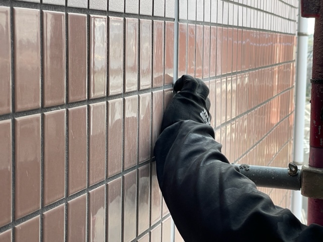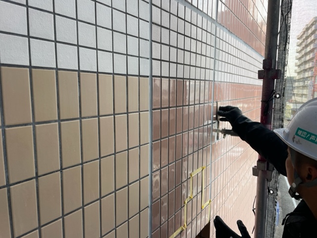 本日は昨年行った箇所と色の違うタイルの斫りと貼りとさせて頂いております!