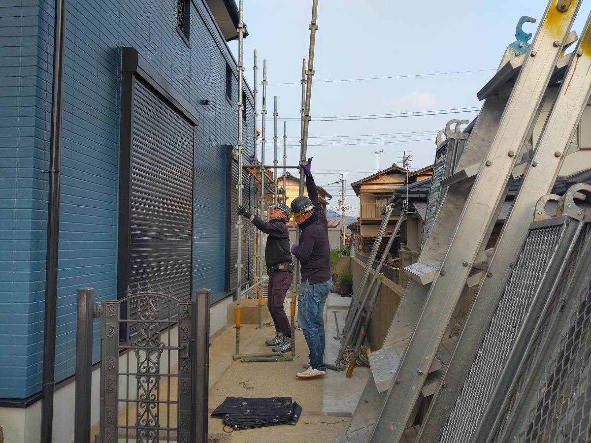 安全に施工しながら、足場の部材をぶつけない様に丁寧に作業させて頂いております!