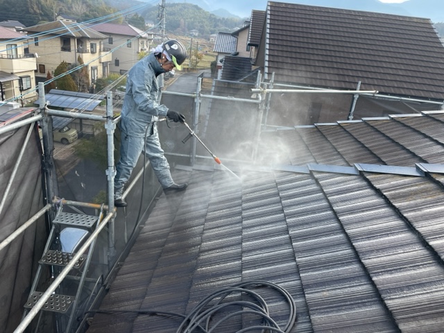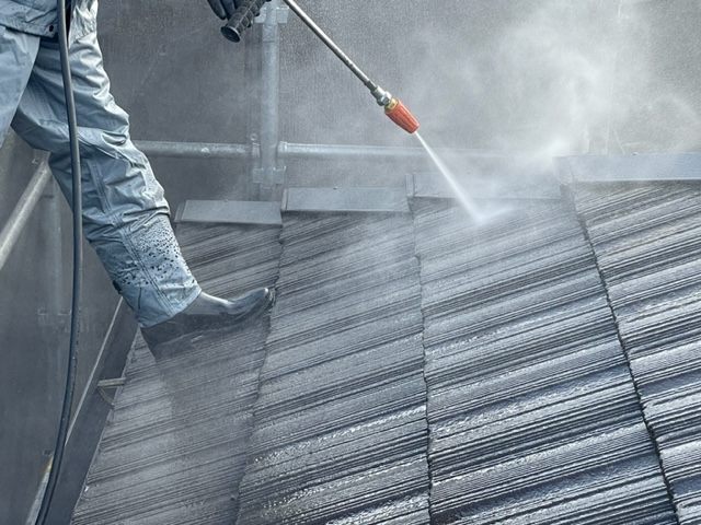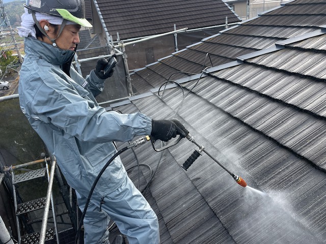 モニエル瓦の場合、最低2回の高圧洗浄を行い、