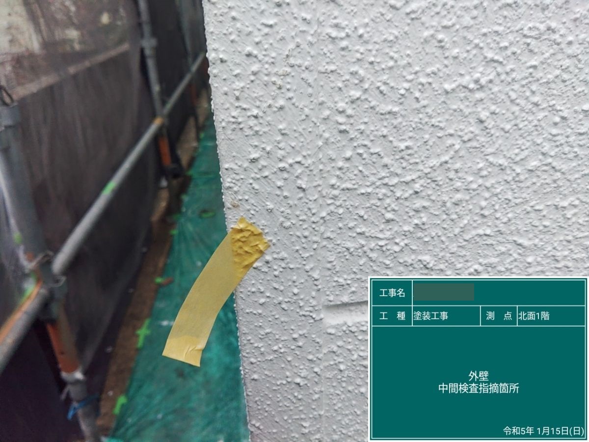 指摘箇所は、マスキングテープを貼り、その後職人さんに手直しして頂いております!