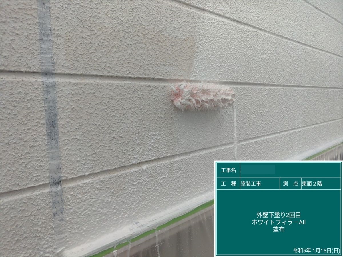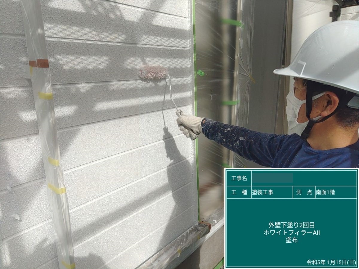 外壁は下塗り2回目が終わり、中間検査を行いました!