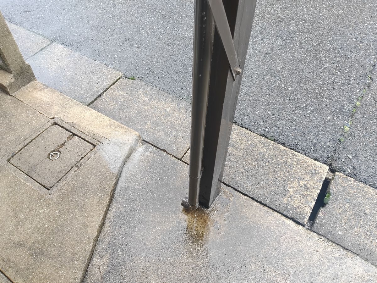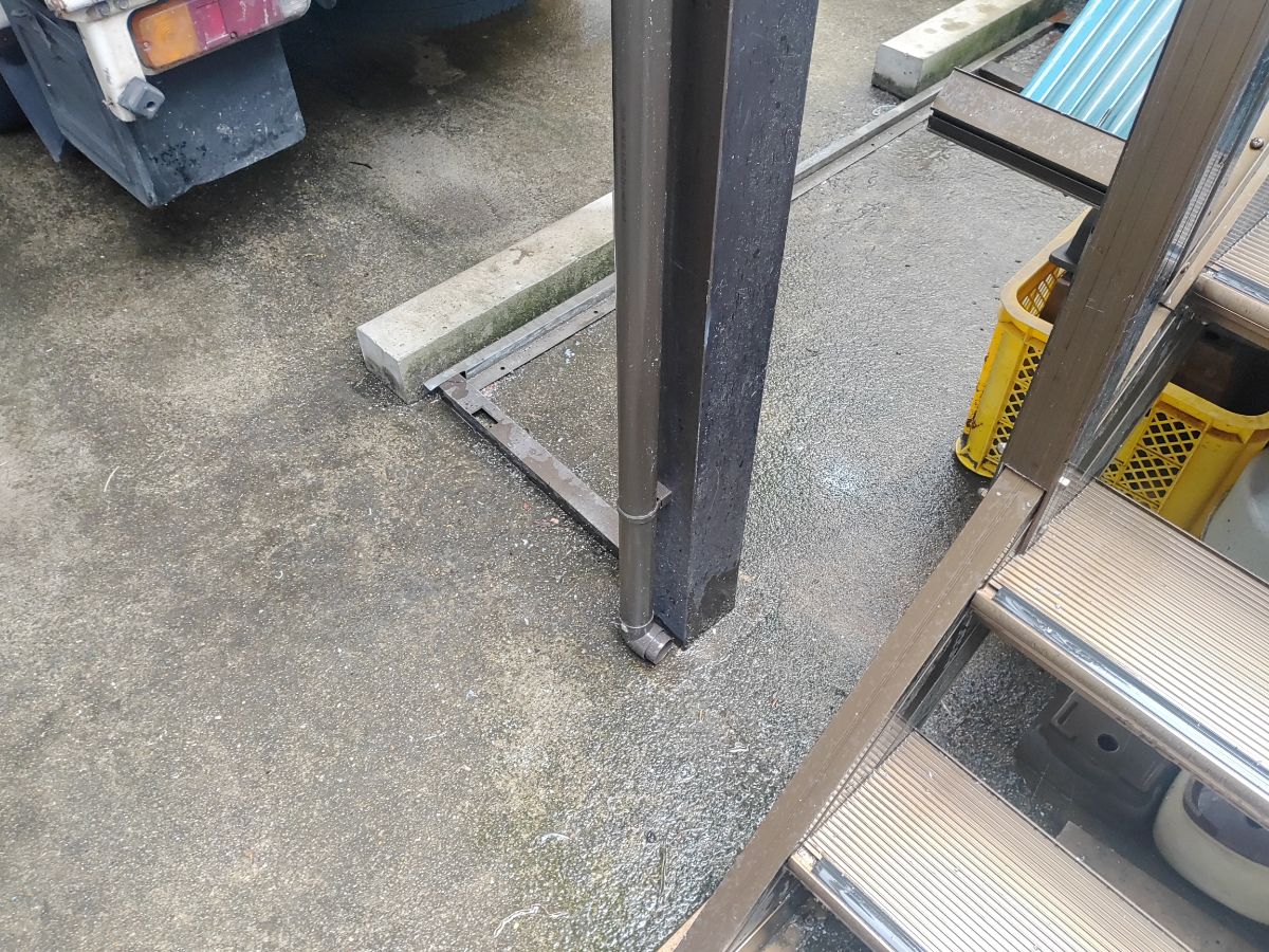 連結根太に樋が取り付けられました!雨などの水が連結根太の中を通り樋から排出され利用になりましたので、アルミデッキ床からの水漏れが減ると考えられます!