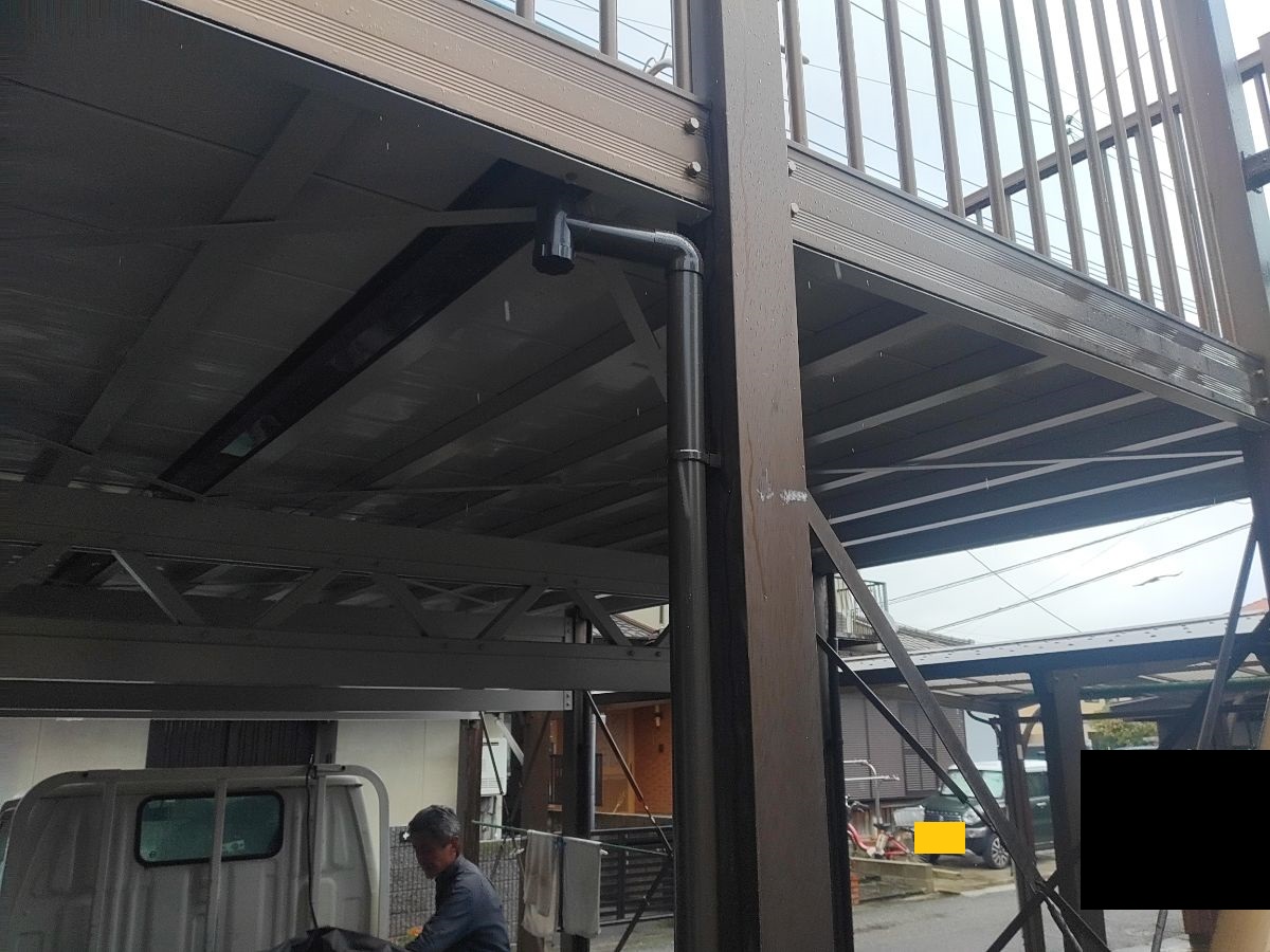 本日は、アルミデッキの樋取り付け工事を行っております!